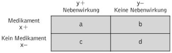 Abb. Kontingenztafel. 2 x 2 Kontingenztafel in der üblichen Notation.
