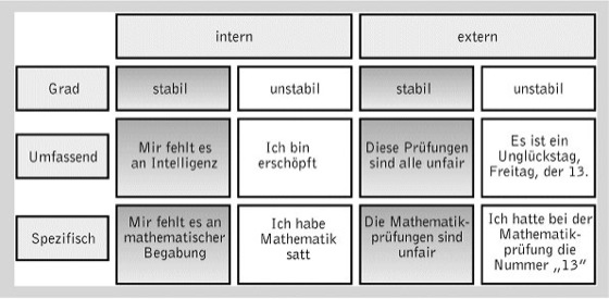 Abb. Prüfungsversagen. Seligmans Attributionsschema der depressiven Reaktion auf Prüfungsversagen.