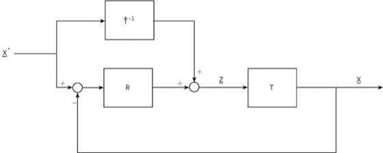 ); der Regelkreis mit dem Regler R leistet im Prinzip eine zweite Schätzung der inversen Transformation.
