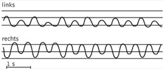 Abb. Psychomotorik 4: Unwillkürliche Modulation der Bewegungsweite der linken Hand, induziert durch eine willkürliche Modulation der Bewegungsweite der rechten Hand.