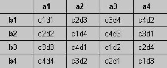 Abb. Quadrat, griechisch-lateinisches. Vierfaktorieller Versuchsplan.