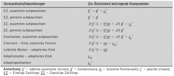 Tab. Verhaltensgenetik: Varianzkomponenten, die zur Ähnlichkeit von Verwandten beitragen.