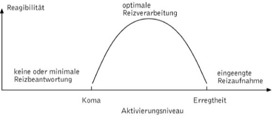 Abb. Yerkes-Dodson-Gesetz. Zusammenhang zwischen Aktivierungsniveau und Reizverarbeitung.