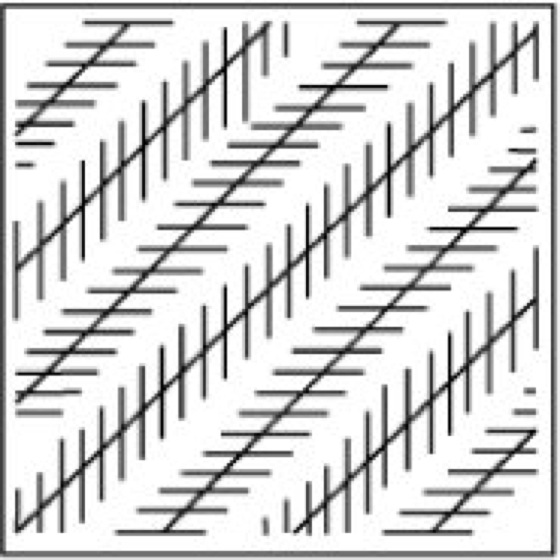 Abb. Zöllner Täuschung. Die kleinen Querstriche erschweren es, die Vertikalen als Parallelen zu sehen.