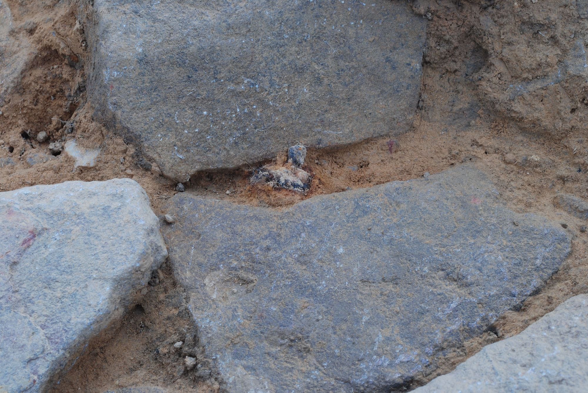 Das Wegpflaster lieferte den Archäologen schließlich die ersten Hinweise zur Datierung – vielmehr das, was sich zwischen den Ritzen angesammelt hatte. Dort fanden sich zahlreiche Schuhnägel, die den römischen Soldaten einst aus den Sandalen gefallen waren. Größe und Form der Nägel stimmen, so Hornung, mit Metallstiften derselben Funktion aus der Zeit der späten Republik und des Gallischen Kriegs überein. Gestützt wird diese These zudem durch Scherben von Tongefäßen, die aus derselben Epoche stammen, sowie weiteren naturwissenschaftlichen Analysen.