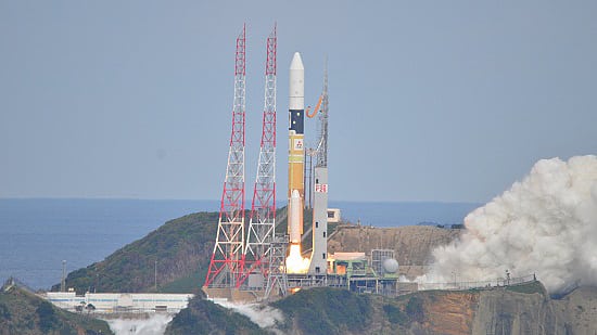Der Start von Hayabusa-2 erfolgte am 3. Dezember 2014 um 5:22 Uhr MEZ vom japanischen Startzentrum Tanegashima an Bord einer Trägerrakete des Typs H-IIA. Rund zwei Stunden nach dem Abheben konnte die japanische Raumfahrtbehörde JAXA die erfolgreiche Abtrennung von Hayabusa-2 von der letzten Stufe der Trägerrakte vermelden, nachdem die Sonde in eine Umlaufbahn um die Sonne eingetreten war. Sie wird Hayabusa-2 in einem Jahr wieder zurück zur Erde führen. Dann wird die Sonde durch ein Swingby-Manöver mittels des Erdschwerefelds auf eine noch entferntere Sonnenumlaufbahn gebracht, auf der sie das Zentralgestirn zwei Mal umrunden wird. Mitte 2018 nähert sich Hayabusa-2 dem Asteroiden 1999 JU3 an und fliegt dann in Formation mit dem nur etwa einen Kilometer großen Himmelskörper. Um sich an die Umlaufbahn des Asteroiden anpassen zu können, ist die Sonde mit einem Ionenantrieb ausgerüstet. Dieser hat zwar nur einen sehr schwachen Schub, kann diesen aber dafür über Monate und Jahre hinweg aufrecht erhalten. Somit kann Hayabusa-2 langsam aber sicher auch größere Bahnänderungen durchführen.