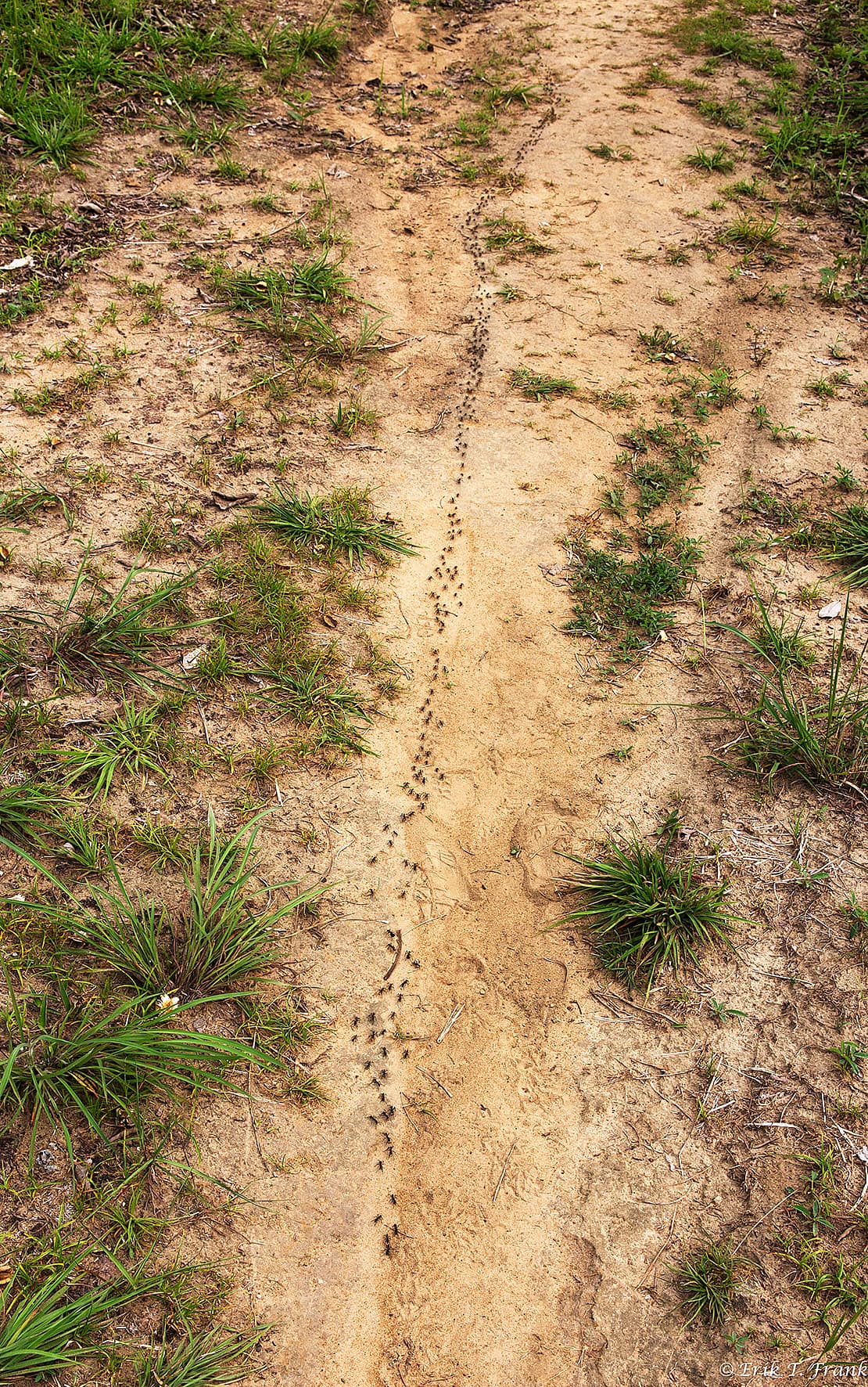 Für die Ameise lohnen sich Umwege, wenn sie dafür auf günstigerem Terrain unterwegs sein können. Bei ihren Versuchen hat das Team um Frank um ein Nest der Matabele-Ameisen (Megaponera analis) herum glatte und grasbestandene Flächen angelegt. Den Vorteil der glatten Flächen wussten die Späher-Ameisen zu nutzen: Die von ihnen markierten Straßen führten in rund 60 Prozent der Fälle zumindest teilweise über das einfachere Geläuf und brachten der Kolonie im Schnitt eine Zeitersparnis von über einem Drittel gegenüber dem direkten Weg ein.