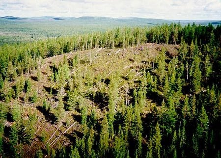 Tunguska heute | Auch heute, mehr als 90 Jahre später, zeugen umgeknickte Bäume noch von der gewaltigen Explosion.