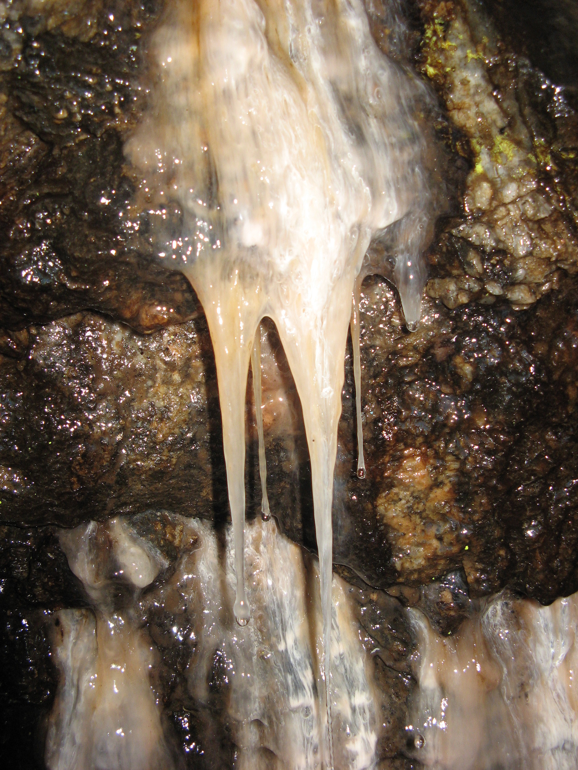 Besonders häufig fanden die Forscher Ferrovum-myxofaciens-Bakterien, die gern in saurem Wasser vorkommen. Sie setzen zur Energiegewinnung Eisen mit Sauerstoff um. Die von den Bakterien hergestellten Eisenverbindungen färben den von der Decke hängenden und langsam fester werdenden Schleim in einem kräftigen orangebraunen Farbton.