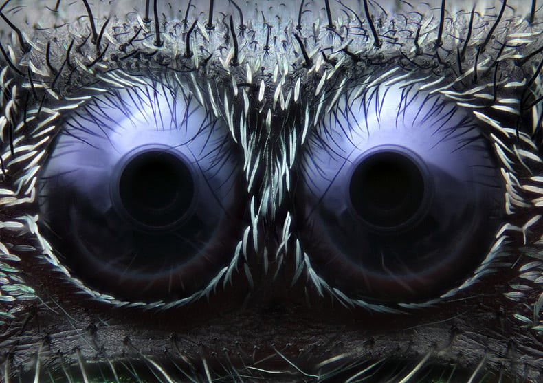 3. Platz: Augen der Springspinne | Dank der Auflichtmikroskopie mit 20-facher Vergrößerung können wir einer Springspinne direkt in die Augen schauen. Noah Fram-Schwartz freute sich über den dritten Platz.