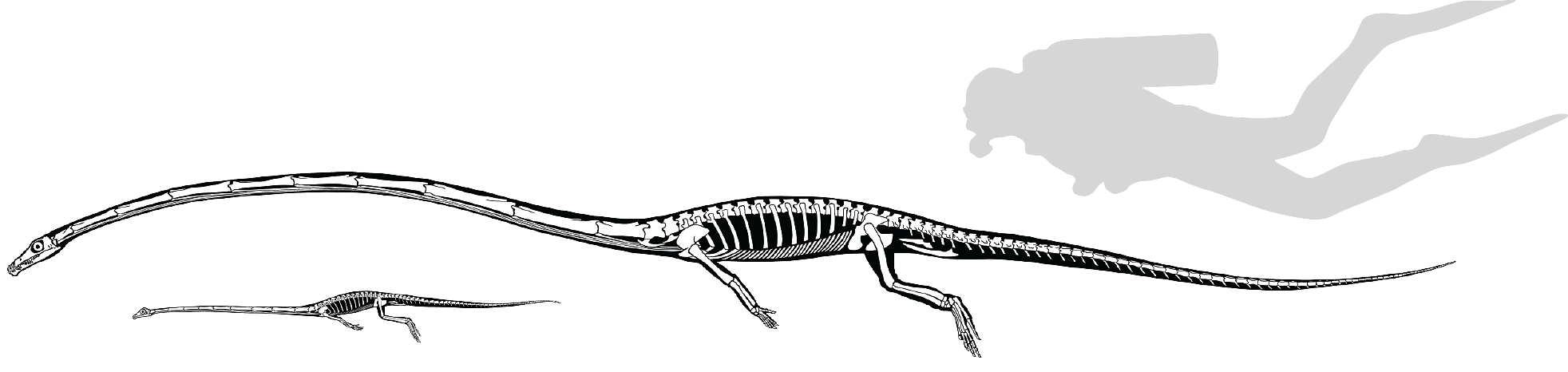 1852 entdeckten Paläontologen ein Fossil, das sie jahrzehntelang narrte: Insgesamt war es sechs Meter lang, doch die Hälfte davon entfiel allein auf seinen Hals. Es besaß hohle Knochen, weshalb Forscher kurzzeitig sogar dachten, dass es sich um einen Flugsaurier handelte. Als sie es dann grob zuordnen konnten, war immer noch unklar, ob es an Land oder im Wasser lebte – und ob kleine Exemplare Jungtiere oder eine eigene Art darstellten. Olivier Rieppel vom Field Museum in Chicago und sein Team konnten jetzt endlich ein paar der Fragen in »Current Biology« lösen: Die unterschiedlichen Größen gehören tatsächlich zu zwei verschiedenen Arten, die Rieppel und Co als Tanystropheus hydroides und T. longobardicus bezeichnen, die beide vor 242 Millionen Jahren während der Trias im Meer lebten.