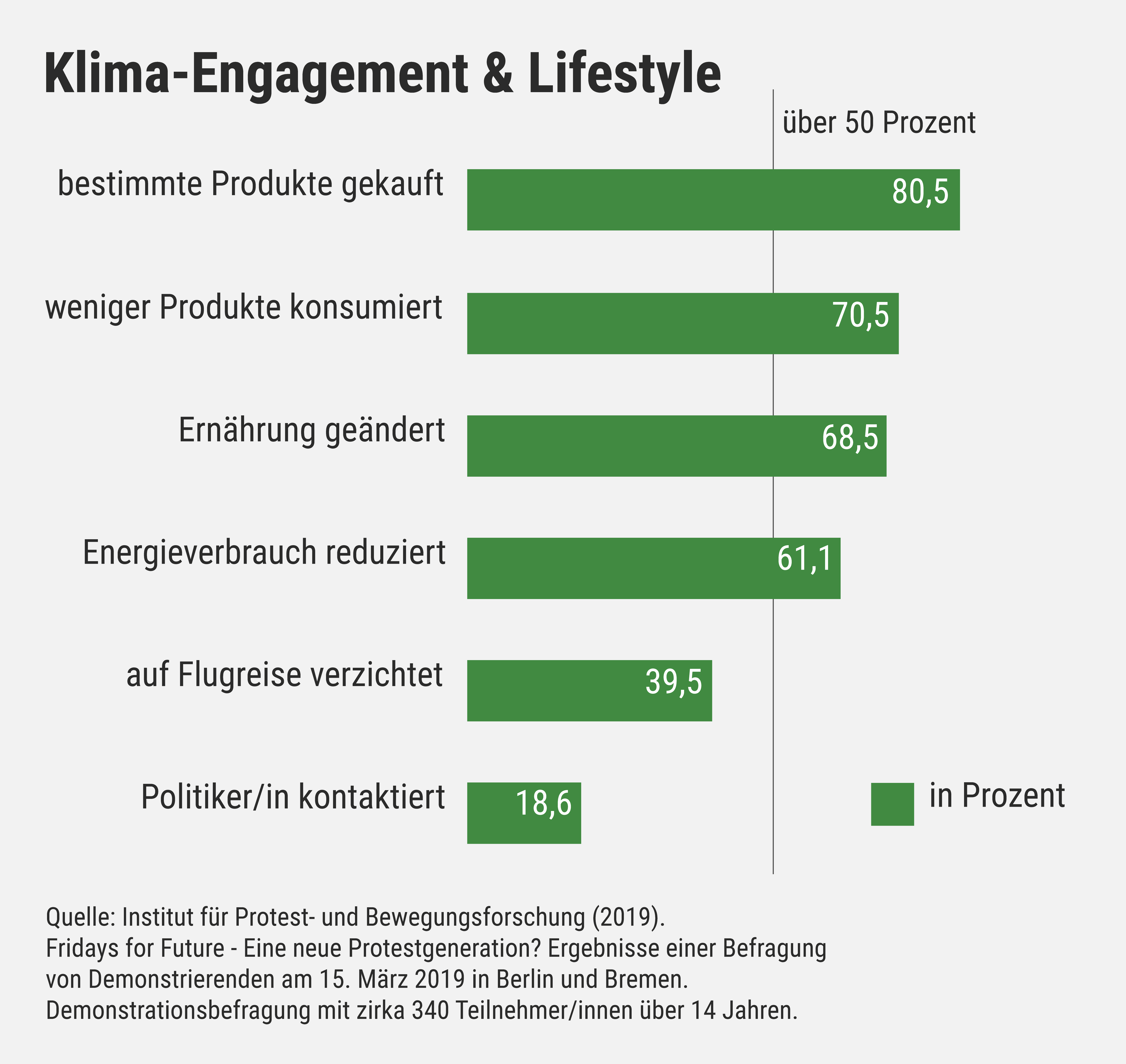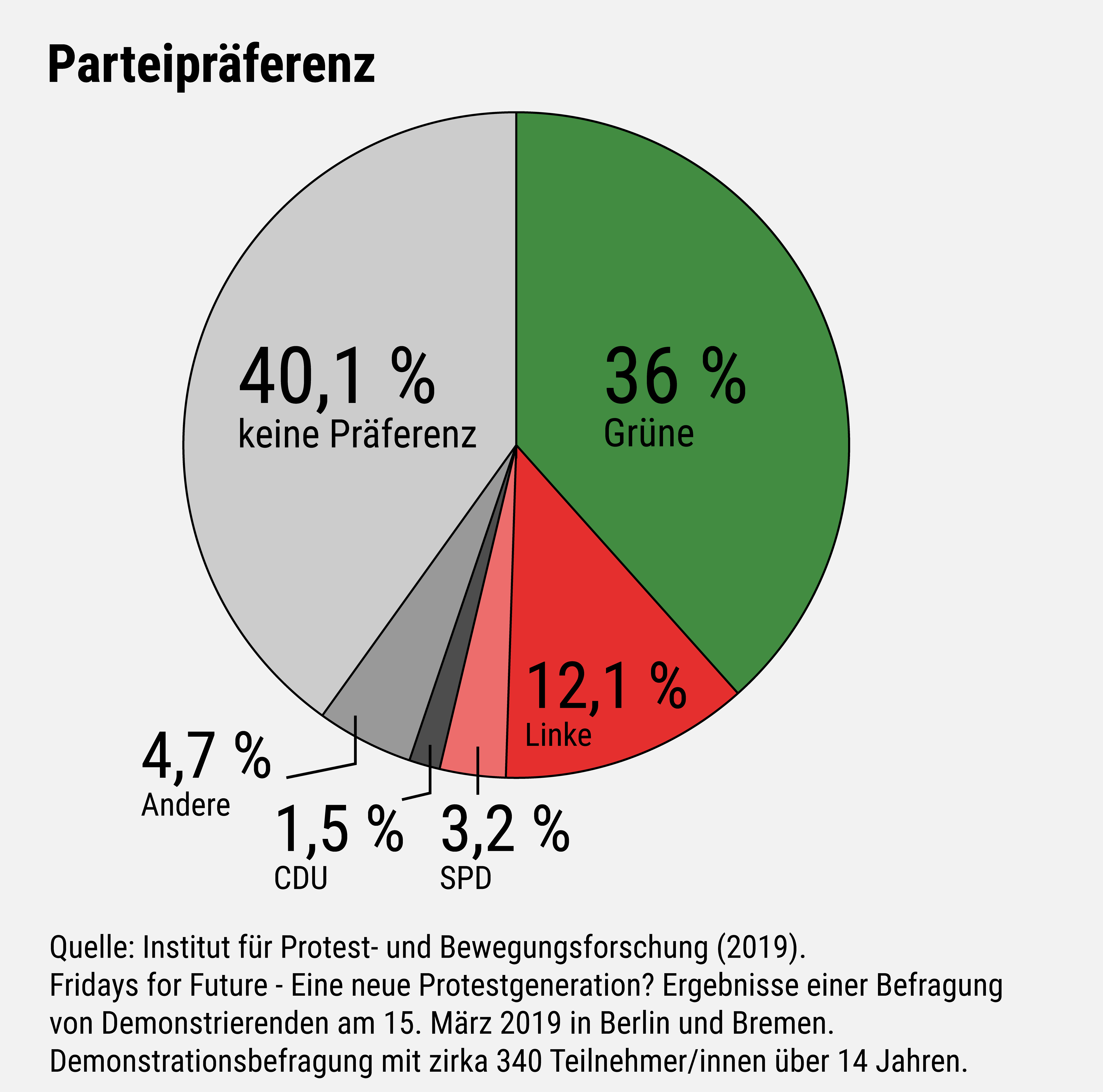 Das ist das gängige Bild bei Demonstrationen. »Fridays for Future« bildet da keine Ausnahme. Man sieht aber auch: Protest wird erlernt. Die von uns befragten Erwachsenen sind häufig selbst schon demoerfahren. Das legt den Schluss nahe: Viele Kinder haben diese Form, sich politisch zu artikulieren, aus ihren Familien übernommen.