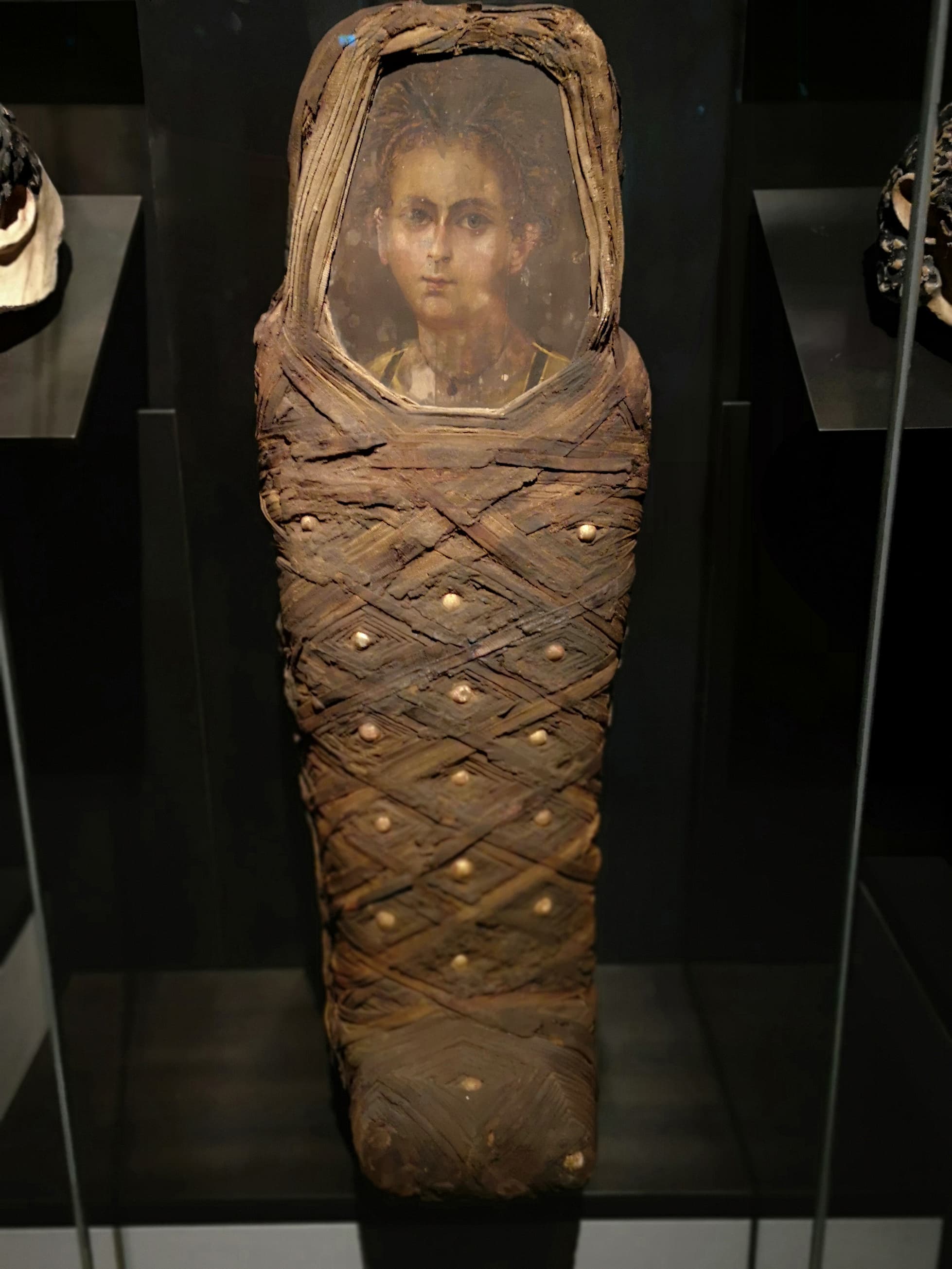 Wenn altägyptische Kinder nicht immer wieder Modell standen für ihr Mumienporträt, dann lassen sich zwei Vermutungen dazu anstellen: Entweder die Bildnisse von Kindermumien zeigen keine große Ähnlichkeit mit den Toten – die Maler hatten die verstorbenen Kinder ja vielleicht nicht zu Gesicht bekommen. Oder: Die Porträts entstanden erst nach dem Tod.