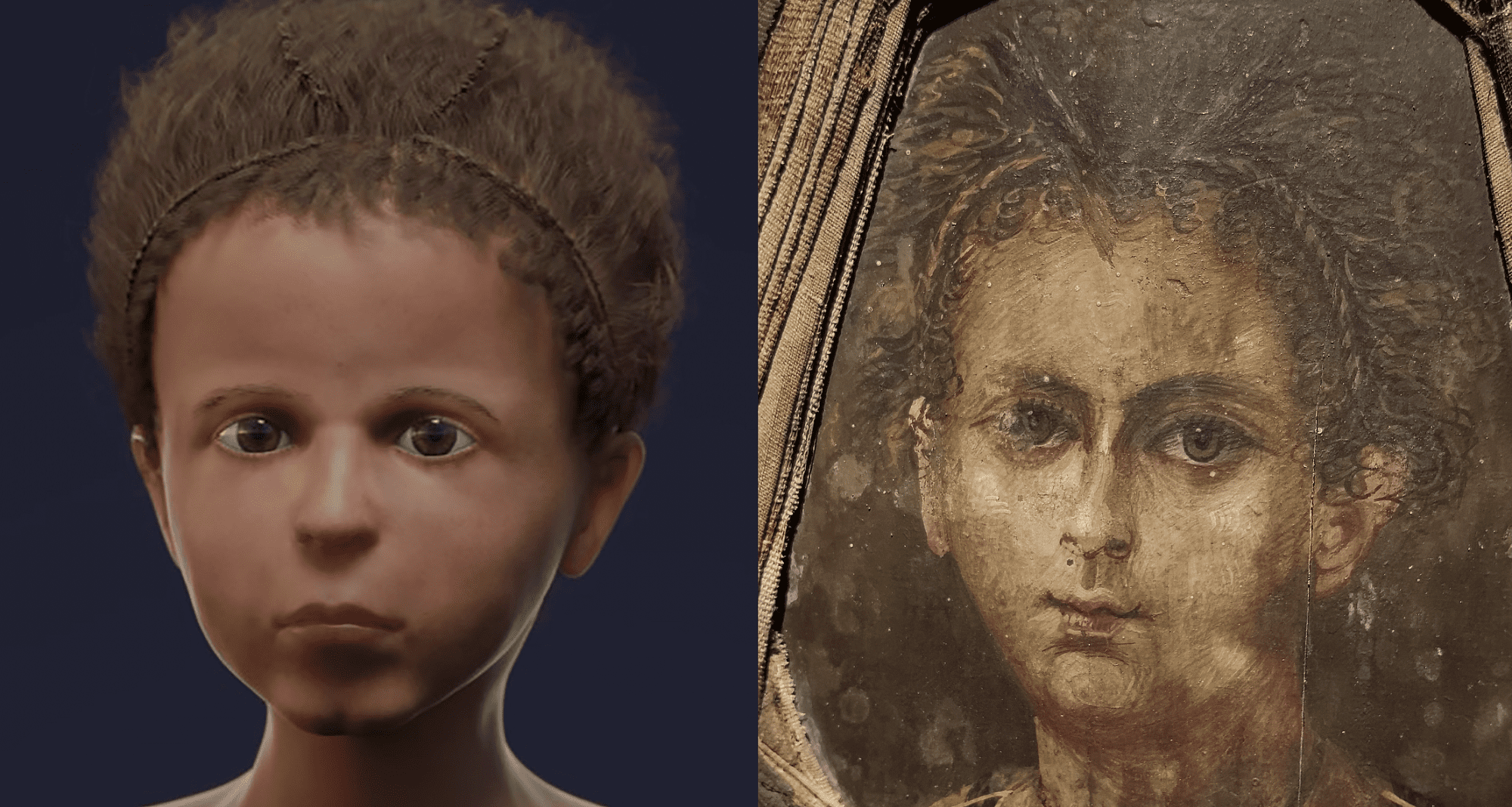 Dabei lag dem Experten das Mumienbildnis für seine Arbeit nicht vor. Das Gemälde hätte sonst das Ergebnis beeinflusst. Aus der Gestalt des Schädels lässt sich die Gesichtsform erschließen, jedoch nicht die Haarfarbe, Frisur oder Augenfarbe. Normalerweise wählen Experten diese Variablen selbst oder folgen den Ergebnissen einer Genanalyse. In diesem Fall leisteten die Forscher ein wenig Hilfestellung. Als die Rekonstruktion nahezu fertig war, baten sie den Spezialisten, braune Augen und braune Locken hinzuzufügen, die über der Stirn in Zöpfen geflochten sind. Also entsprechend der Darstellung auf dem Mumienporträt. Das sollte es leichter machen, die Gesichter vergleichen zu können.