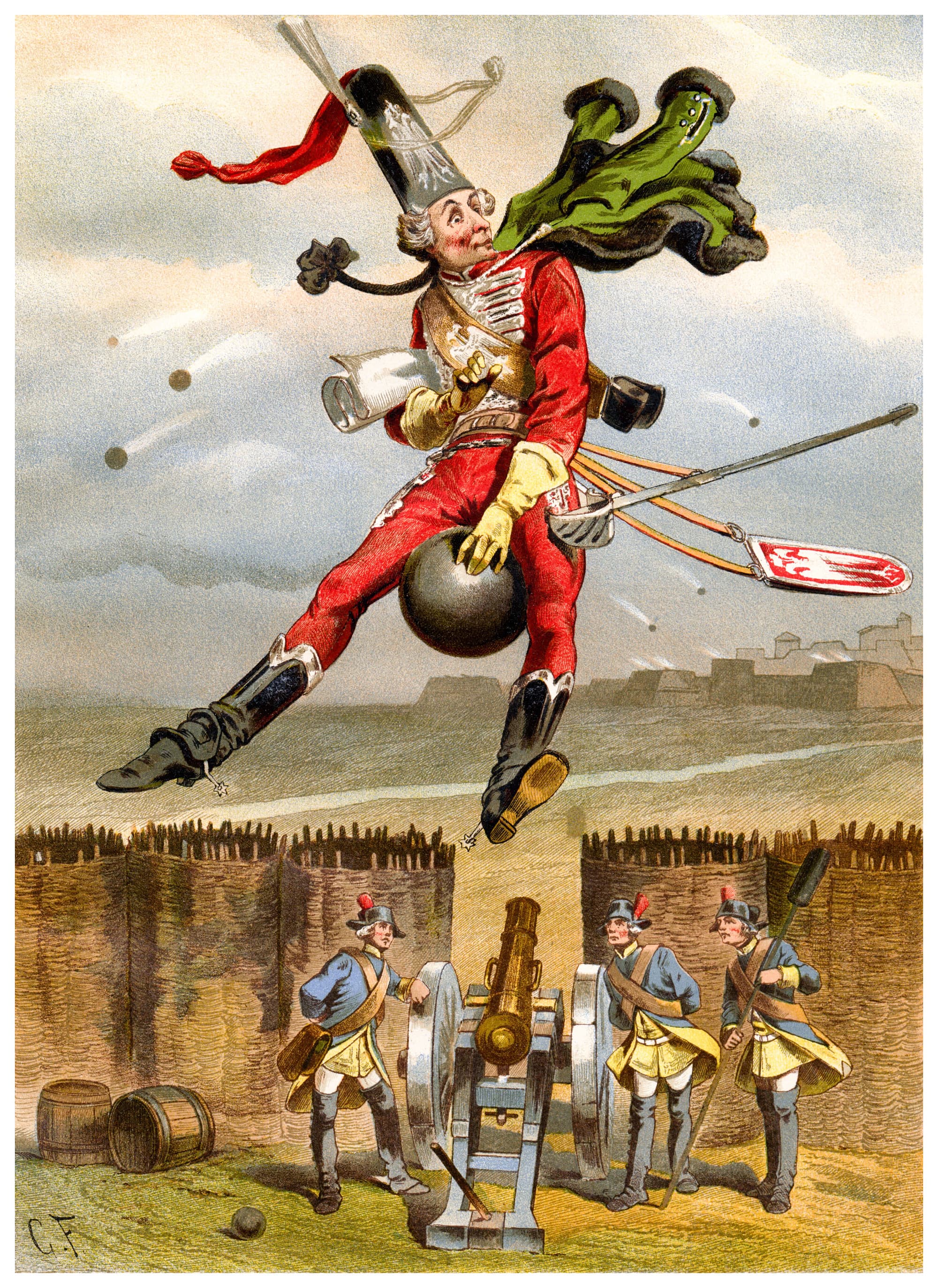 Was der Mann nicht alles kann! Er ist ein brillanter Schütze und famoser Jäger, ein verwegener Kürassier und glänzender Reiter, der selbst auf einem halben Pferd oder einer Kanonenkugel noch eine gute Figur macht. Gerät er in den Sumpf, zieht er sich selbst am eigenen Zopf heraus. Gehen ihm die Gewehrkugeln aus, lädt er die Flinte eben mit Kirschkernen. Er trinkt Wein mit dem Sultan, schlägt Hand und Bett der Zarin aus, segelt über die Weltmeere und reist sogar ins Weltall - tour-retour. Kurz: Er war überall, weiß immer Rat, kennt jeden, kann alles. Gerät er trotzdem hie und da in die Bredouille, ist ihm Göttin Fortuna stets gewogen. Denn was er aus eigener Kraft nicht schafft, gelingt ihm dank seines allzeit verlässlichen Glücks.