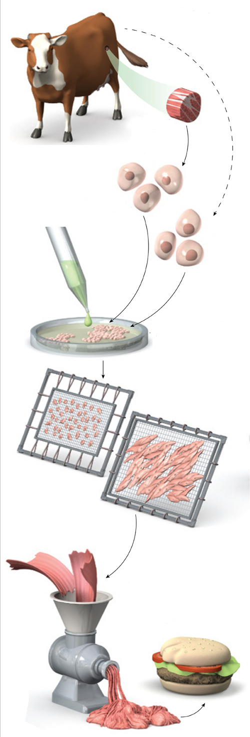 Der zweiten Grund für die allgemeine Begeisterung ist ethischer Natur: Philosophen wie Peter Singer oder die Tierschutzgruppe PETA begrüßen die Aussicht, der Tierquälerei in der Massentierhaltung ein Ende zu bereiten. Wäre es nicht besser, durch eine Biopsie an einer einzigen Kuh Millionen von Hamburgern zu züchten statt dafür Hunderttausende Rinder zu schlachten?