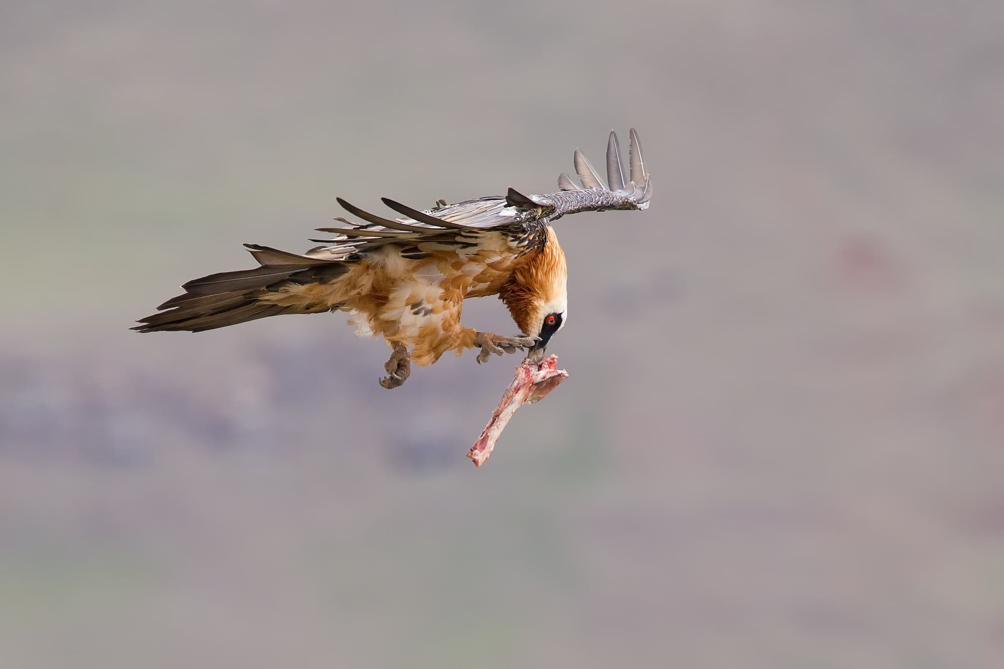 Ist ein Knochen zu groß zum Verschlucken, tragen die Geier sie hoch über ein Geröllfeld und lassen sie aus bis zu 80 Metern herunterstürzen. Im Trudelflug folgen sie den Knochen, um dann die Splitter aufzusammeln. Diese Eigenart hat ihnen den Beinamen »Knochenbrecher« eingebracht, der sich auch heute noch in spanischen Namen für die Vögel widerspiegelt.