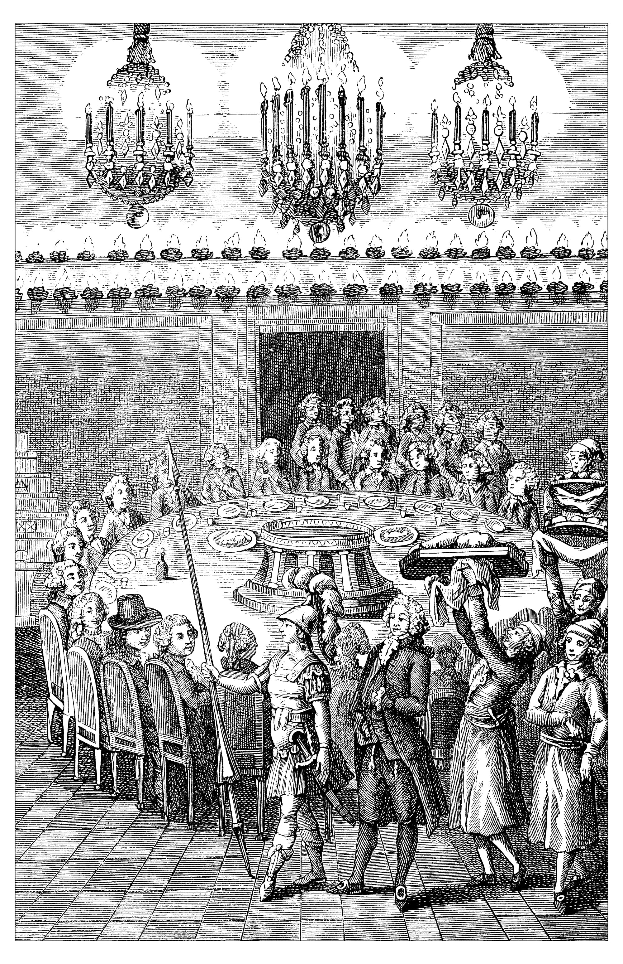 Weniger exzentrisch, aber nicht minder Aufsehen erregend waren die so genannten »Déjeuners Philosophiques«, zu denen Grimod Dichter und Denker der Zeit zweimal in der Woche zu einem intellektuellen Stelldichein lud. Philosophiert wurde über Gott und die Welt, stundenlang, wobei der Gastgeber immer ein bestimmtes Thema vorgab. Damit aber die Denkerrunde stets auch einen klaren Kopf und das nötige Durchhaltevermögen behielt, wurde statt Alkohol literweise Kaffee konsumiert. Bei einer dieser Jour-fixe-Sitzungen soll auch jener Satz gefallen sein, der viel über Grimods Geisteshaltung aussagt: »Vor dem Gesetz und bei Tische haben alle gleiche Rechte und gleiche Pflichten. Die Tafel macht uns alle gleich.« Eine Einstellung, die viele seiner aristokratischen Standesgenossen nicht teilten.