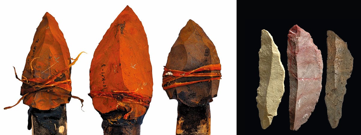 Noch bis vor wenigen Jahren lieferten die viel jüngeren hölzernen Wurfspeere von Schöningen den frühesten unzweifelhaften Beweis, dass Menschen selbst jagten, in diesem Fall Pferde. Die acht schlanken Speere, die mitsamt Spitze aus den Stämmchen junger Bäume gefertigt wurden und hervorragende Wurfeigenschaften hatten, fanden Archäologen in den 1990er Jahren in einer Braunkohlegrube nördlich des Harzes zusammen mit anderen Jagdwaffen und zahlreichen Tierknochen. Nach aktuellen Berechnungen sind sie rund 300 000 Jahre alt. Die eingangs beschriebenen Funde aus Ostafrika lassen vermuten, dass manche Menschengruppen zu dieser Zeit bereits Speere mit Steinspitzen anzufertigen wussten. Eine noch umstrittene neue Studie verlegt den Beginn dieser Technologie für Südafrika sogar deutlich weiter zurück, auf etwa eine halbe Million Jahre vor unserer Zeit.