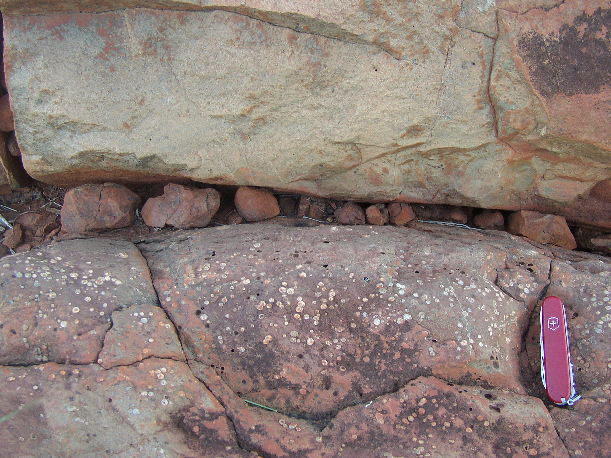 In den Basalten vom Beasley River in Pilbara haben sich diese Blasen bis heute erhalten. Sie wurden allerdings über die lange Zeitspanne hinweg mit Mineralen wie Kalzit oder Achat aufgefüllt und erscheinen heute als helle rundliche Flecken in den rostbraunen Basalten. Den Forschern kam es aber vor allem auf ihre Volumina an und nicht auf die Füllungen. Die Größenverteilung der Blasen in den alten Gesteinen belegt, dass im Vergleich zu heute der Luftdruck deutlich niedriger war. Der wahrscheinlichste Wert liegt bei etwa einem halben Bar – nur halb so viel wie heute. Um nicht einer Fehlinterpretation aufzusitzen, hatten die Forscher bei der Auswahl der Gesteine sichergestellt, dass diese eindeutig in Wasser auf Meereshöhe erstarrt sind und nicht etwa auf einem hohen Berg bei entsprechend niedrigerem Luftdruck.