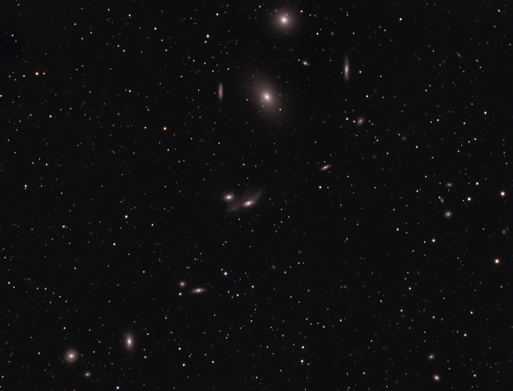 Unter guten Beobachtungsbedingungen ohne Lichtverschmutzung und mit einem Teleskop ab etwa 250 Millimeter Durchmesser sollten alle Mitglieder der Kette zu sehen sein. Die Astrofotografen haben es da schon deutlich leichter. Ein starkes Teleobjektiv oder ein kleiner Refraktor reichen, richtig nachgeführt, bereits aus, um die Galaxien auf den Bildern festzuhalten.