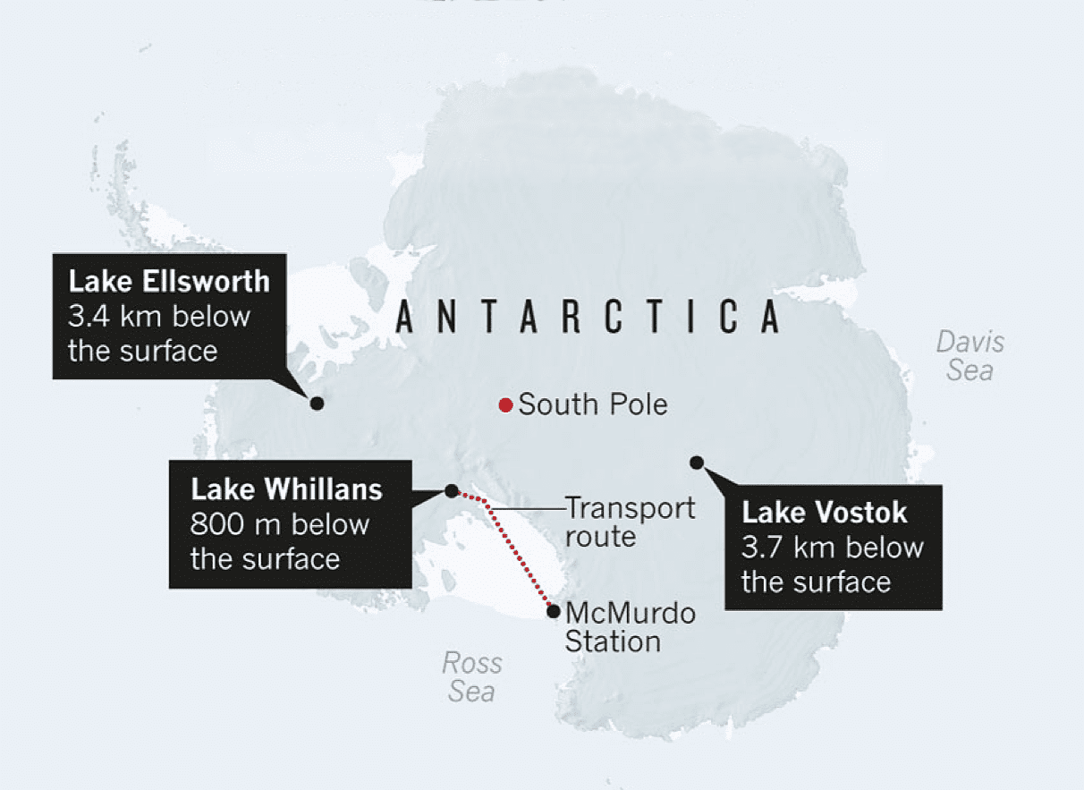 Noch bis in die 1990er Jahre interessierten sich nur wenige für Seen unter der antarktischen Eisdecke. Dies änderte sich erst dann, als Radarmessungen und seismische Kartierungsarbeiten erste, ernst zu nehmende Hinweise auf subglaziale Seen erbrachten. Inzwischen kennt man etwa 400 davon. Sie werden von dem Wasser gespeist, das mit einer Geschwindigkeit von ein paar Millimetern pro Jahr am unteren Ende der Eisdecke abschmilzt. Der Grund für diesen Schmelzvorgang ist die Umgebungswärme aus dem Erdinneren.