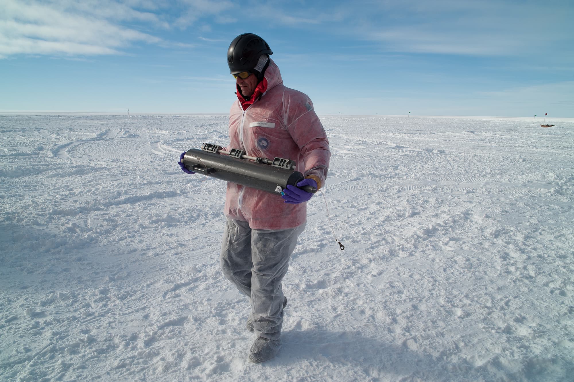 Ein kalter Wind fegte über das antarktische Flachland und betäubte Nasen und Ohren der Wissenschaftler. Diese standen an einem dunklen Loch im Eis, aus dem gerade mit einer Winde die letzten Meter eines Seils heraufgezogen wurden. Eisstücke prasselten vom Seil herab. Zwei Arbeiter in steriler Schutzkleidung beugten sich vornüber, um die Ladung aus dem Loch entgegenzunehmen: einen Zylinder von der Länge eines Baseballschlägers, der am Ende des Seils baumelte. Mit einem Hammer schlugen sie das Eis ab und tauten das Gefäß mit einem Fön an. "Ist er zu?", rief der Arbeiter an der Seilwinde.