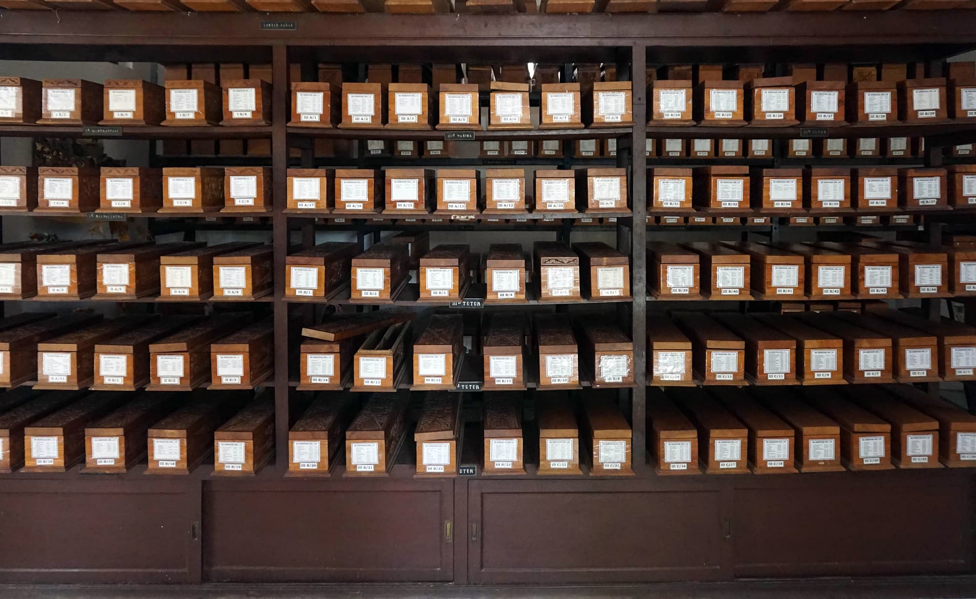 Nyoman Catra ist der Hüter der rund 3000 Lontar in der ISI-Lontarbibliothek des Kulturministeriums in Denpasar. Viele der Lontar werden hinter Glas in Regalen in einem schummerigen Raum aufbewahrt, der Büro und Bücherei zugleich ist. Die meisten aber ruhen in Holzkästen, an deren Stirnseite auf weißem Papier der Inhalt verzeichnet ist. Vorsichtig nimmt Catra aus einem der Glasschränke ein sehr dickes Lontar heraus. »Das ist das längste Lontar unserer Sammlung. Auf den 295 Blättern geht es um Astronomie«, erzählt Catra. Der Experte kennt auch den Inhalt des aus 254 Blättern bestehenden, zweitlängsten Lontar: Liebeslieder und Liebesgedichte.