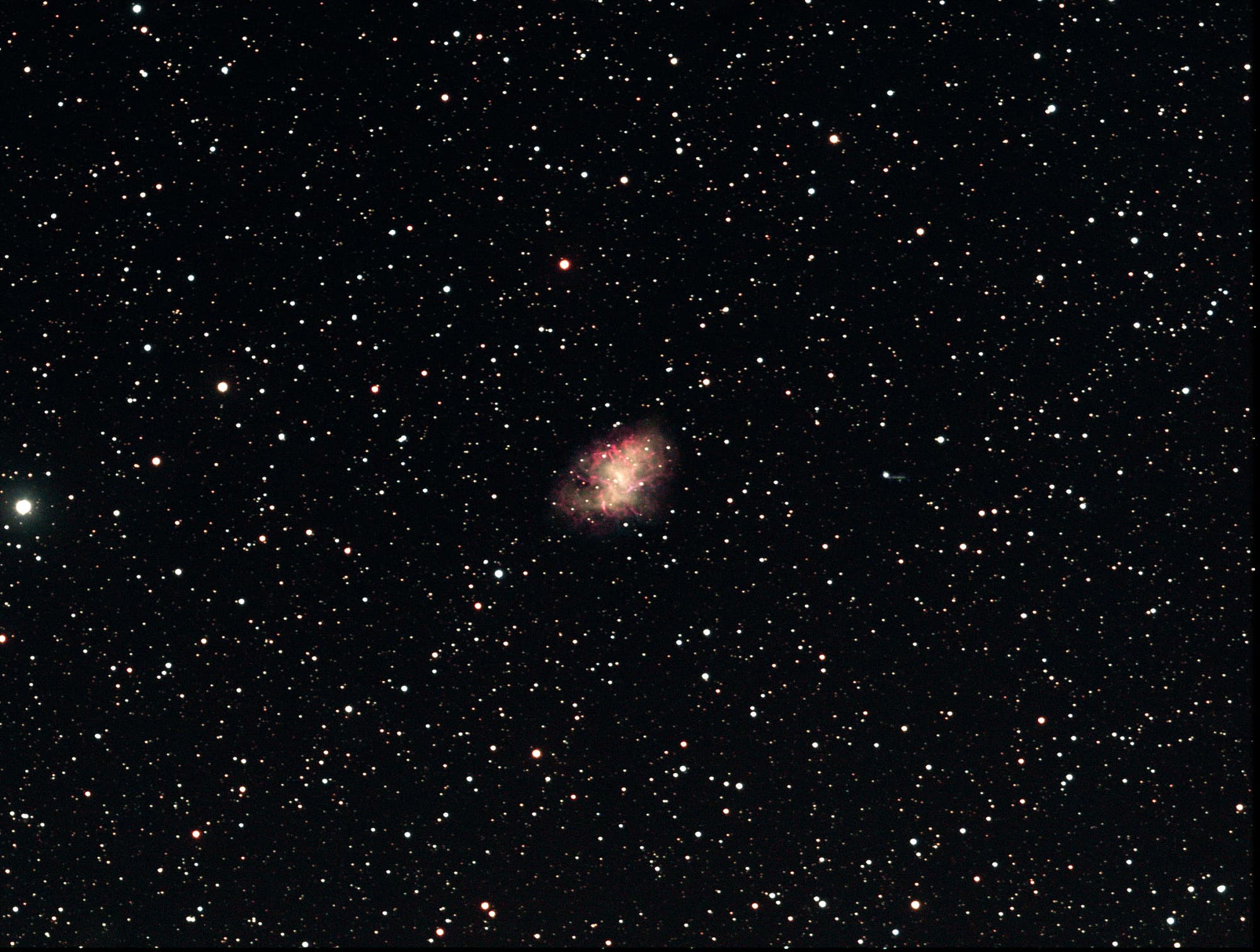 Falls unter dem Weihnachtsbaum eine neue Kamera lag, können Sie diese am ersten Weihnachtsfeiertag auch gleich ausprobieren. Denn der Asteroid (20) Massalia zieht im Sternbild Stier ganz knapp an Messier 1, dem Krebsnebel, vorbei. Das Ganze können Sie natürlich auch visuell mit dem Teleskop beobachten, allerdings entfaltet der Krebsnebel erst auf Fotografien seine wahre Schönheit, wo auch der Asteroid durch seine Eigenbewegung als Strichspur zu erkennen ist. Die Brennweite des Objektivs oder Teleskops sollte bei einem APS-C-Chip, wie ihn moderne digitale Spiegelreflexkameras aufweisen, möglichst hoch sein, denn Messier 1 erscheint relativ klein am Himmel.