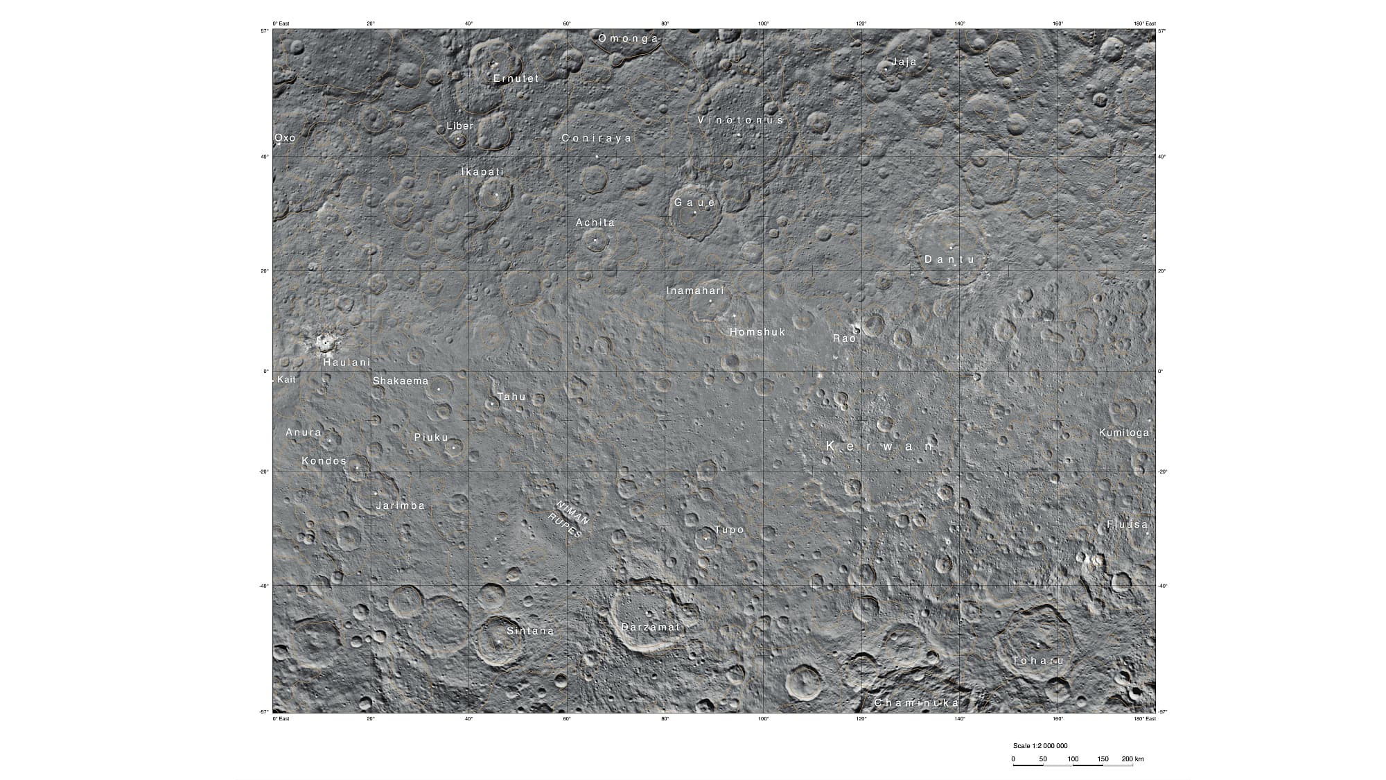 Seit März 2015 umrundet die US-Raumsonde Dawn den Zwergplaneten Ceres auf enger werdenden Umlaufbahnen und sendet von dort immer detailreichere Aufnahmen von dessen Oberfläche zur Erde. Nun wurde ein erster Atlas der gesamten Oberfläche des Zwergplaneten mit einer räumlichen Auflösung von 400 Metern pro Bildpunkt vorgestellt. Die Aufnahmen entstanden aus einem Abstand von 4400 Kilometern zur Oberfläche. Das Kamerasystem von Dawn wurde von Wissenschaftlern des Max-Planck-Instituts für Sonnensystemforschung und des Deutschen Zentrums für Luft- und Raumfahrt (DLR) entwickelt und gebaut, wobei auch die Finanzierung von deutscher Seite erfolgte. Dafür sind die Forscher an den genannten Einrichtungen berechtigt, die von Dawn übermittelten Bilddaten auszuwerten.
