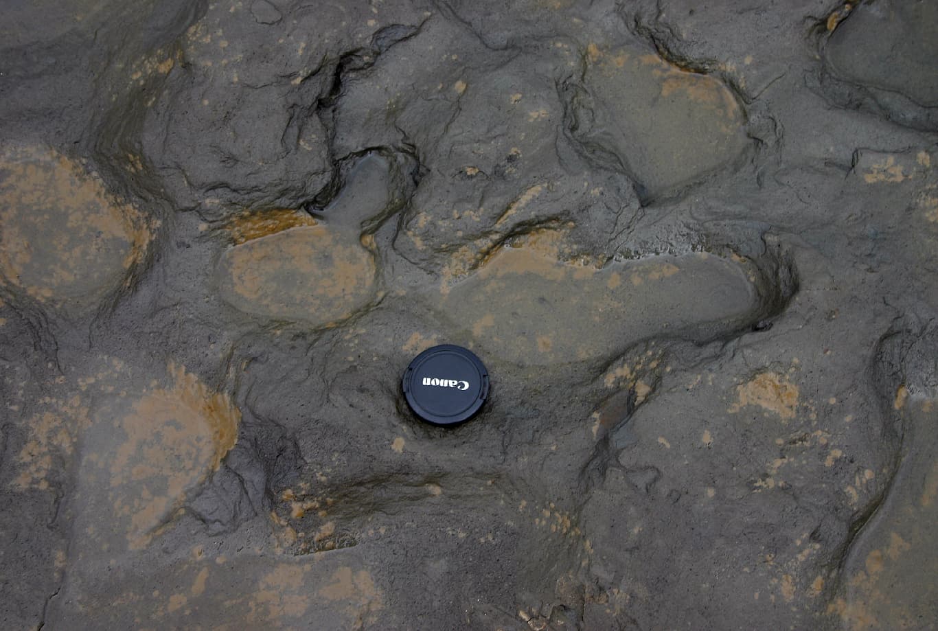 Die Fußstapfen lagen in der Vergangenheit unter Sand verborgen, der im vergangenen Jahr von Sturmfluten abgeschwemmt wurde. Zufälligerweise waren die Forscher in der Nähe mit Ausgrabungen beschäftigt und wurden so auf die Spuren aufmerksam. Andernfalls wären sie wohl unentdeckt geblieben, denn an der ungeschützten Oberfläche überdauerten sie keine zwei Wochen: Die Flut hat das weiche Material inzwischen abgetragen und die Spuren für immer verwischt.