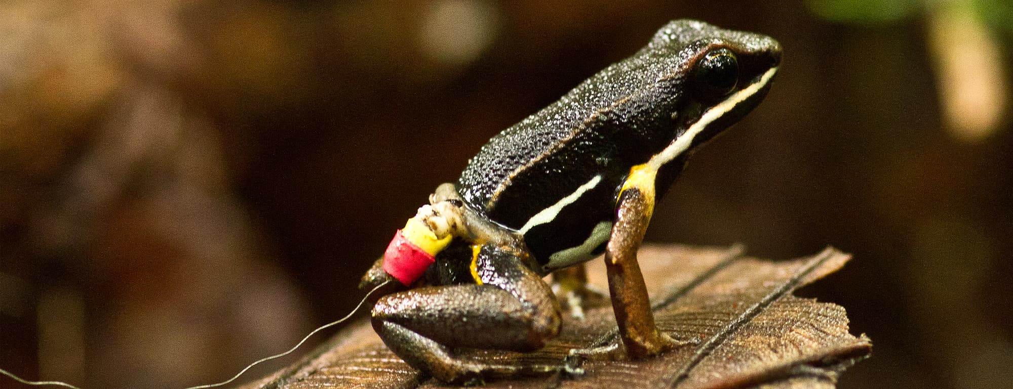 Glanzschenkel-Baumsteigerfrösche (Allobates femoralis) tragen ihre Kaulquappen über Stunden oder gar Tage auf dem Rücken zu Wasserstellen, die teils weit verstreut liegen – dabei legen sie mitunter einige Hundert Meter durch das Unterholz zurück. Diese speziellen Anforderungen begünstigten vermutlich die evolutionäre Herausbildung eines besonders guten Orientierungssinns. Weitere Forschungen an den Fröschen könnten mehr über die Stammesgeschichte der Navigation bei Wirbeltieren verraten.