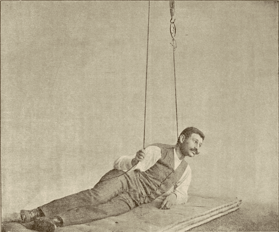 Minovici ist klar: Will er die erhofften Forschungsergebnisse erzielen, muss er mit seinem kompletten Körpergewicht im Seil hängen. In zwei Schritten steigert er die Belastung. Zunächst lässt er sich an einer ähnlichen Vorrichtung wie im vorhergehenden Experiment mit einer Schlaufe aufhängen. Sechs- bis siebenmal ziehen ihn Helfer aus dieser Position ein bis zwei Meter nach oben, »um sich an das Hängen zu gewöhnen«, wie Minovici schreibt. Vier bis fünf Sekunden hielt er es in dieser Position aus. Tags drauf folgt Schritt zwei: Trotz fürchterlicher Schmerzen am und im Hals steckt er erneut den Kopf in die Schlaufe. Immer weiter dehnt er die Zeit ohne Boden unter den Füßen aus. Am Ende sind es 26 Sekunden.