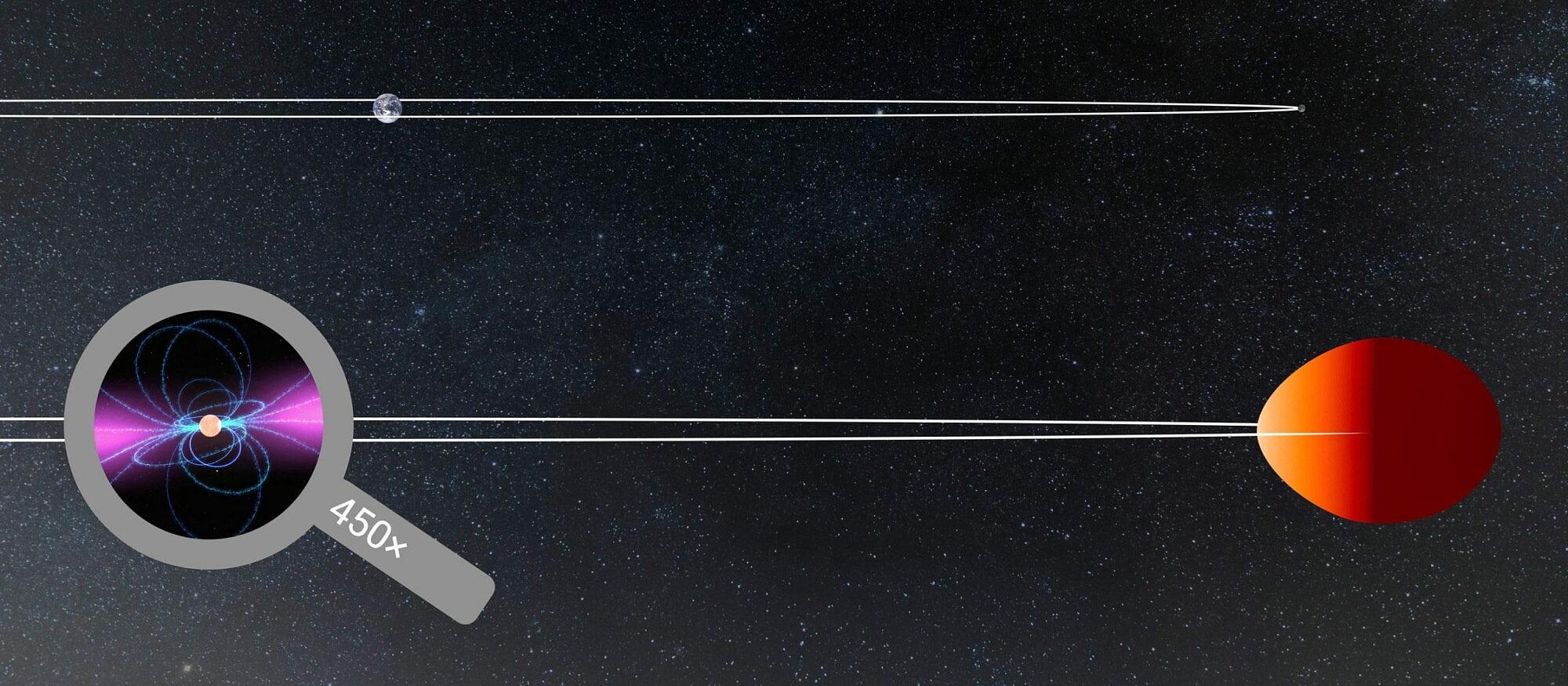 Die dichte Suppe stammt von dem Begleiter des Pulsars, einem Zwergstern. Dieser umrundet den kompakten, mehr als zwei Sonnenmassen schweren Neutronenstern alle 75 Minuten einmal, berichten die Forscher im Fachmagazin »The Astrophysical Journal Letters«. Wegen der großen Nähe hat die Strahlung des Pulsars Teile des Begleitsterns verdampfen lassen – das heiße Gas hüllt das System nun in eine Art Kokon.