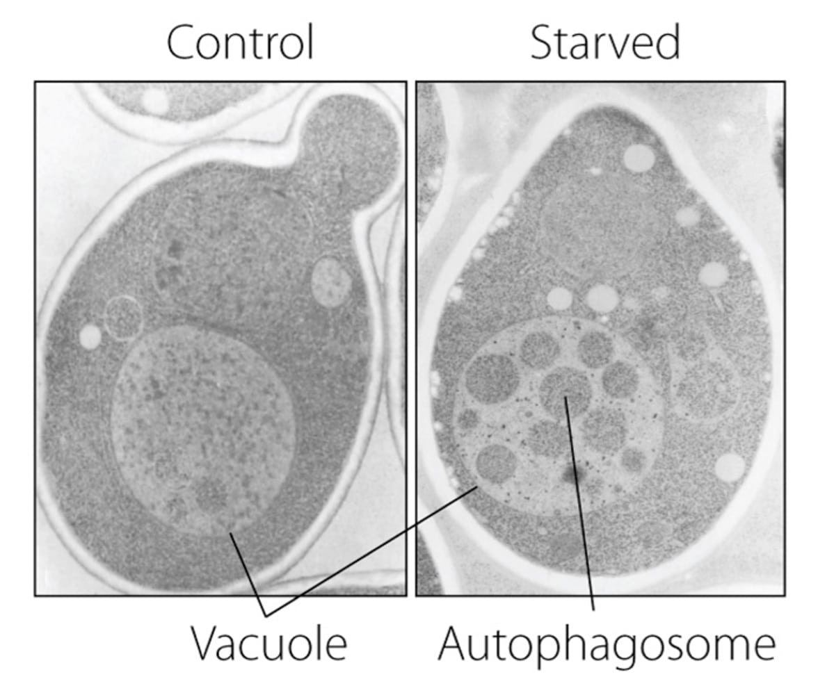 Den Namen von Ohsumis Untersuchungsgegenstand (nach dem griechischen "Autophagie", "sich selbst verspeisen") hatte schon 1963 der Nobelpreisträger Christian de Duve geprägt, der dann 1974 für die Entdeckung des Lysosoms geehrt worden ist. Dieses Organell ist ein großer, in Zellen aktiver Komplex, in dem Bakterien und schadhafte oder anderweitig nicht mehr benötigte Zellbestandteile aufgelöst werden. Und schon de Duve hatte sich dafür interessiert, wie die Zellen eigentlich den auszusortierenden Sperrmüll erkennen, der dann gezielt zum Lysosom transportiert wird. Gemeinsam mit anderen Forschern erkannte er, dass Zellen auf Stress, Nährstoffmangel oder Giftstoffe reagieren, indem sie Membranbläschen ausbilden, in denen offenbar größere Zellbestandteile gesammelt und in Richtung Lysosom-Müllhalde aussortiert werden. Wie dieser Prozess aber gesteuert wird und was ihn genau auslöst, blieb unbekannt – die dynamischen Membranbläschen bildeten sich und verschwanden einfach zu schnell. Offenbar aber regelten sie einen universellen Mechanismus des Lebens - man erkannte, dass Autophagieprozesse in den verschiedenen Geweben des Körpers von Hirn, Leber, Schilddrüse bis Haut ablaufen, wo sie durch unterschiedlichste Reize angestoßen werden – wie eben durch Stress, Nährstoffmangel oder Giftstoffe. Zudem fand man Autophagosomen bald in so unterschiedlichen Organismen wie Insekten, Fröschen und Menschen sowie in den Zellen von Amöben, Algen oder Geißeltieren.