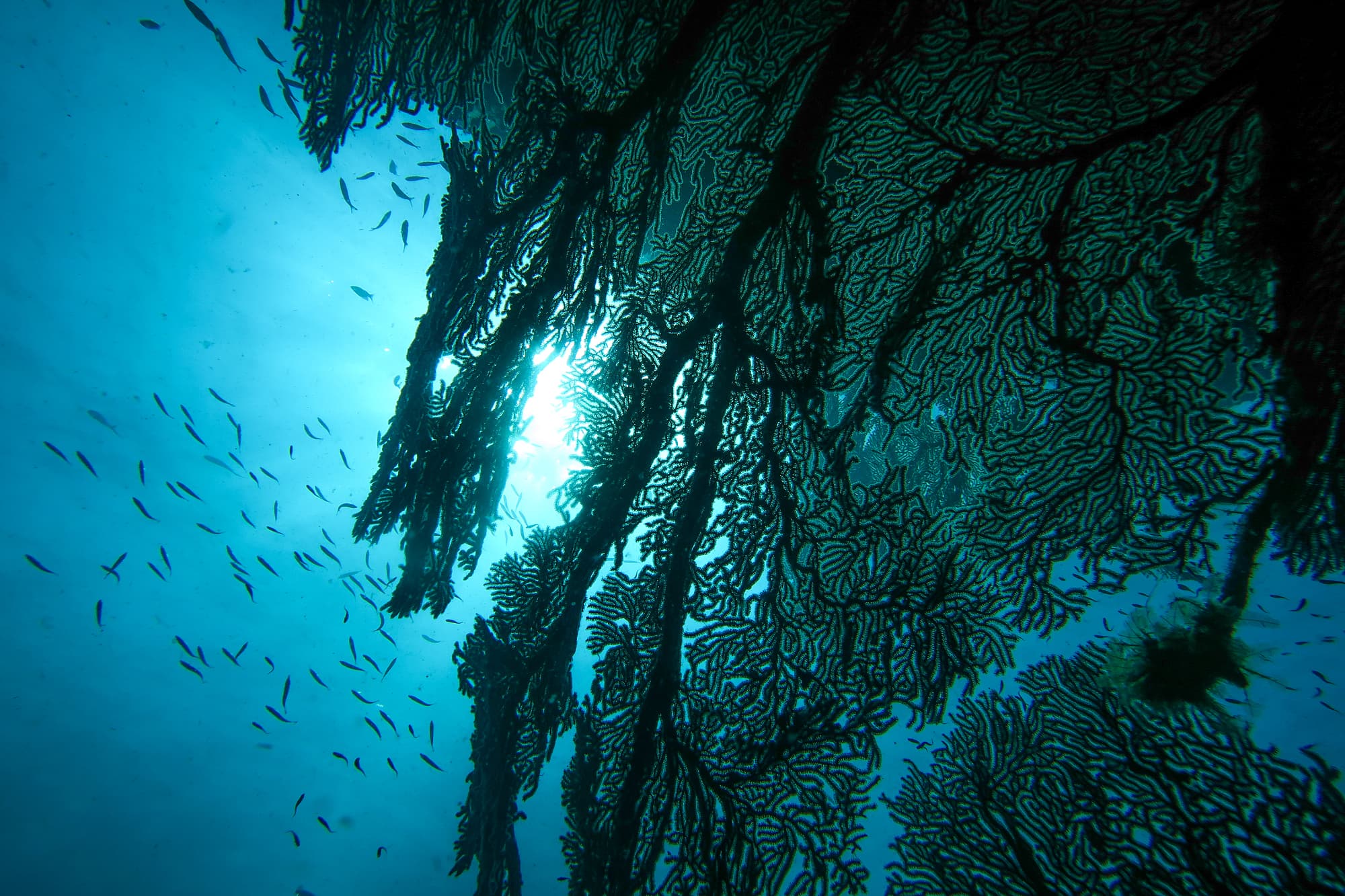 Heute haben sich die Wissenschaftlerin und ihre Mitarbeiter zu der Steilwand eines Riffs von der Größe eines kleinen Mehrfamilienhauses auf den Weg gemacht, die mit leuchtend bunten Korallenformationen besetzt ist. Vom Ankerplatz des Forschungsschiffs aus erreichen sie mit ihrem Schlauchboot nach einer zehnminütigen Fahrt den Rand der Lagune. Vega Thurber, ihre Doktorandin Grace Klinges und der Rest des Forscherteams legen ihre Tauchausrüstungen an und lassen sich einer nach dem anderen seitlich über den Bootsrand ins Wasser fallen.