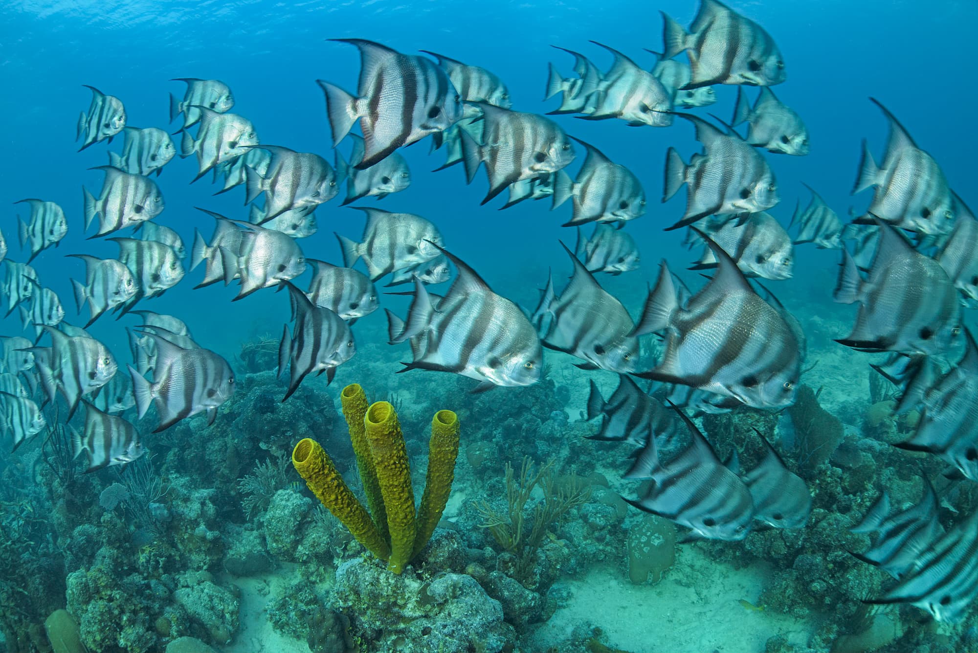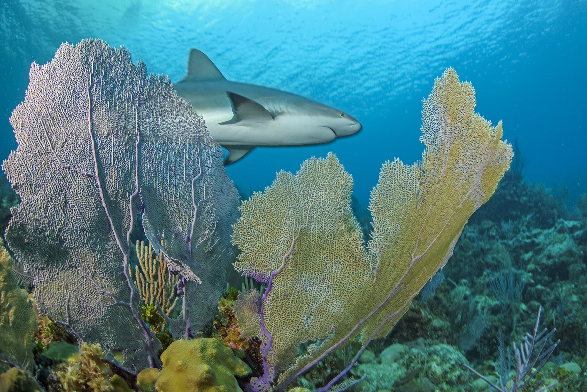 Während eines Tauchgangs im Dezember 2017 fand sich der Meeresbiologe und Fotograf Octavio Aburto plötzlich inmitten einer Gruppe von acht Karibischen Riffhaien (Carcharhinus perezii) wieder. Der Wissenschaftler kannte die Unterwasserwelt zahlreicher Korallenriffe der Erde gut genug, um in jenem Augenblick, als die faszinierenden Lebewesen ihn umkreisten, zu begreifen, an welch besonderem Ort er sich gerade befand.