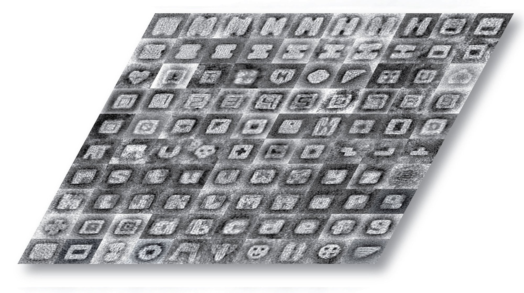 Erfolgskontrolle mit dem TEM-Mikroskop | Die Elektronenmikroskopaufnahmen zeigen in der Draufsicht die oben abgebildeten, am Computer modellierten Formen.