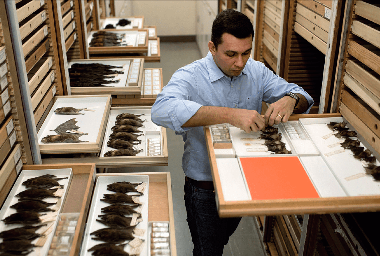 Wie Helgen ist auch Moratelli von naturhistorischen Sammlungen fasziniert. Als Kind schaute er mit seinem Vater Dokumentationen über das ursprüngliche Amerika im Fernsehen an und interessierte sich schon damals für Zoologie. Inzwischen hat er sechs neue Fledermausarten beschrieben und arbeitet an acht weiteren, die vor etlicher Zeit, genau genommen vor 29 bis 111 Jahren, gefunden wurden.