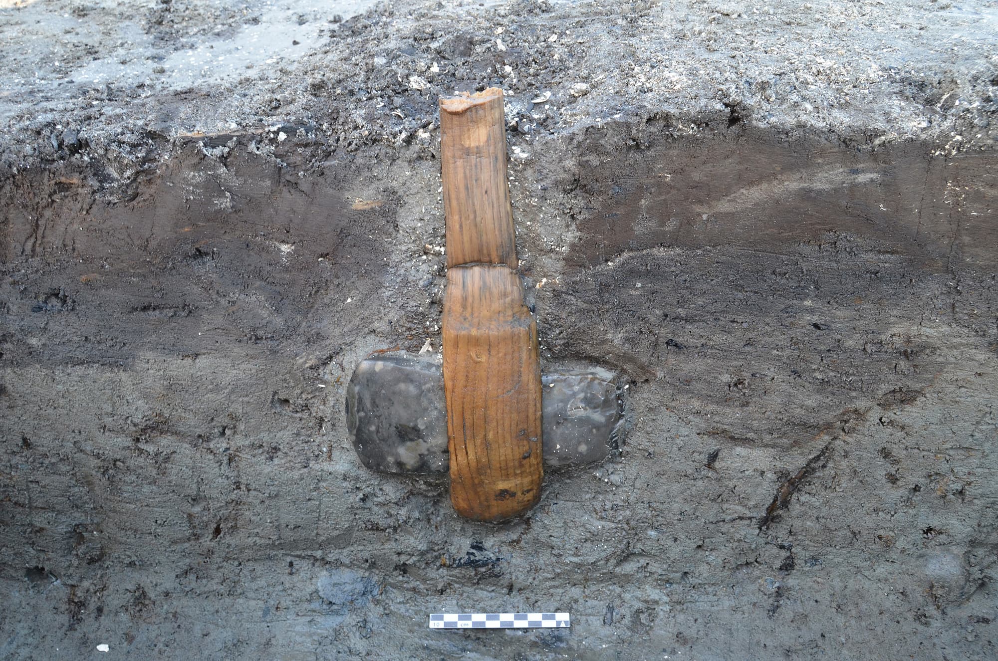 Die Axt wurde seiner Zeit rund 30 Zentimeter tief senkrecht in den Meeresboden gestoßen – offenbar mit Absicht. Da die Forscher noch weitere Gegenstände entdeckten, die auf ähnliche Art und Weise im Boden steckten – unter anderem zwei Bögen –, vermuten sie, dass es sich bei dem Platz um eine Art Opferstätte gehandelt haben muss, an dem die Gegenstände aus rituellen Gründen vergraben wurden. Dafür dass auch der hölzerne Schaft der Axt bis heute überdauerte, sorgten vermutlich die feuchten, anaeroben Bodenbedingungen.