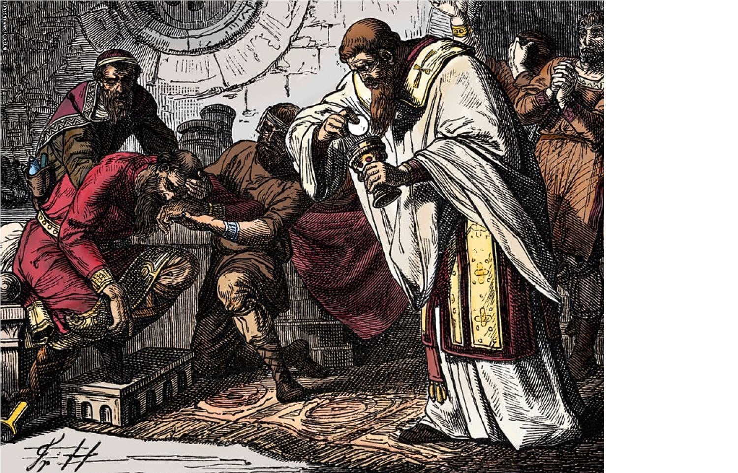 Kurz nach dem triumphalen Hoftag von Quedlinburg, am 7. Mai 973, starb auch Otto in Memleben eines plötzlichen Todes. Dem Bericht unseres wichtigsten Gewährsmanns Widukind sind die Forscher bisher kritiklos gefolgt. Nur über die Todesursache, die Widukind verschweigt, hat man gerätselt. Vergleicht man seinen Bericht vom Ableben Ottos mit anderen Sterbeszenen in der antiken und frühmittelalterlichen Geschichtsschreibung, insbesondere mit seinen eigenen Darstellungen vom Tod Heinrichs I. und dessen Frau Mathilde, so springt als Erstes ins Auge, wie knapp das Ganze geraten ist. Hier liegt kein Glanzstück literarischer Virtuosität vor, sondern geradezu ein ärztliches Bulletin.