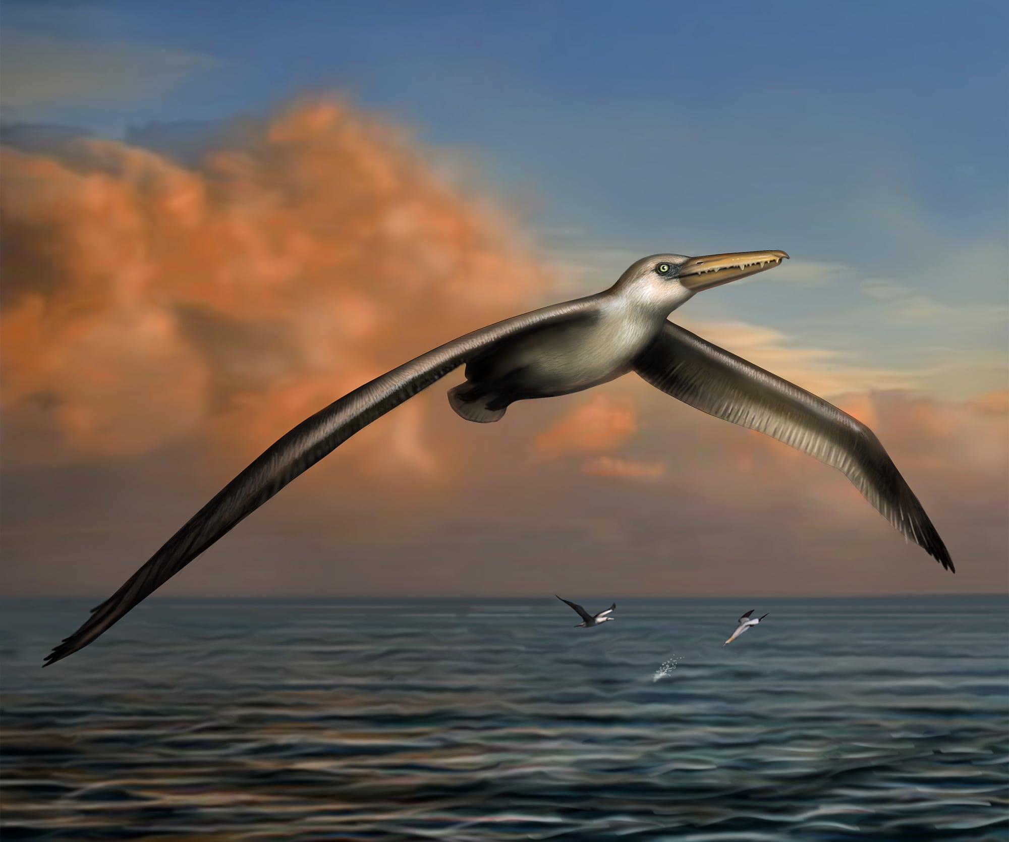 Entdeckt wurden die versteinerten Überreste des Seevogels bereits 1983, als der neue Flughafenterminal von Charleston in South Carolina gebaut wurde. Doch erst jetzt widmeten sich Paläontologen dem "bemerkenswert gut erhaltenen" Fossil, das aus einem kompletten Schädel sowie mehreren Flügel- und Fußknochen besteht: Die Skelette von Vögeln überstehen den Versteinerungsprozess oft nur bruchstückhaft, weil sie innen hohl sind, was aber die Flugfähigkeit begünstigt. Wie der Gattungsname Pelagornis bereits verrät, gehört die Art zu den so genannten Pelagornithidae oder Pseudozahnvögeln, einer ausgestorbenen Familie an Seevögeln, die sehr groß werden konnten und als besonderes Merkmal über einen bezahnten Schnabel verfügten: Diese Zähne erleichterten ihnen wahrscheinlich den Fischfang auf hoher See.