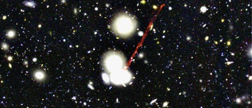 Bei einer Beobachtung des Koma-Galaxienhaufens im Sternbild Haar der Berenike (Coma Berenices) stieß eine Forschergruppe um Masafumi Yagi vom Nationalen Optischen Observatorium von Japan (NAOJ) auf einen eigenartigen Strich am Himmel.