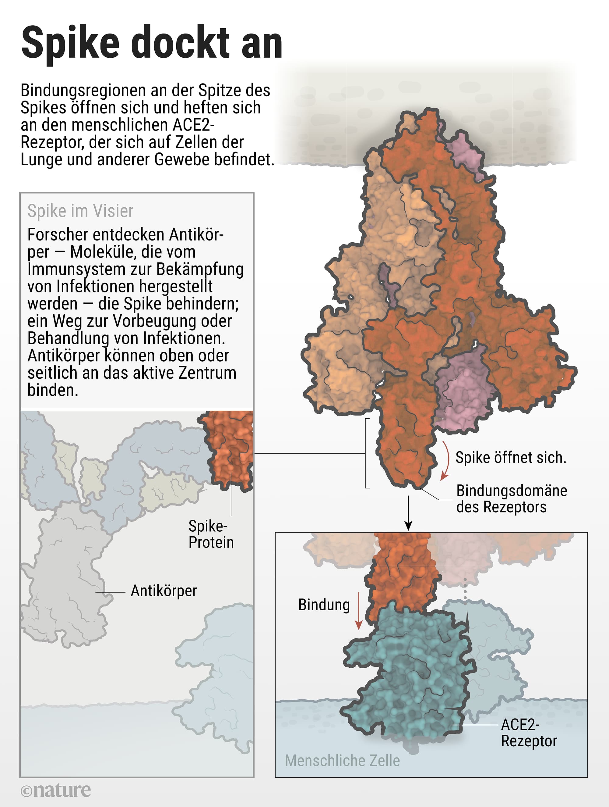 In Großbritannien sucht das Team vom Diamond nach Verbindungen, die eine andere Coronavirus-Protease blockieren könnten. McLellan aus Texas hat seine Spike-Konstrukte bisher an mehr als 100 Labors weltweit verschickt. Viele suchen damit nach Behandlungen, die an Spike ansetzen, etwa um Antikörper aus dem Blut von Menschen zu fischen, die Covid-19 überstanden haben. Aktuell arbeitet McLellans Team an der Charakterisierung des ersten dieser potenziell therapeutischen Antikörper.
