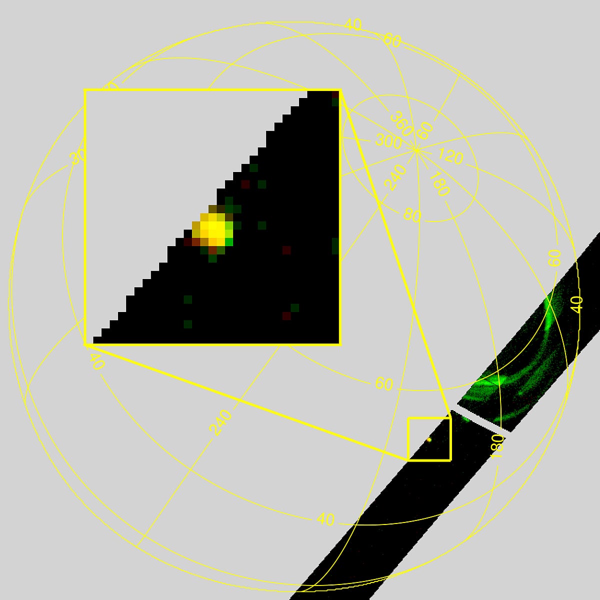 Während solche Minieinschläge auf dem Riesenplaneten keineswegs selten sind, braucht man sehr viel Glück, um eine solche Feuerkugel zu sehen. Sie sind zu klein und leuchtschwach, dass sie mit erdgebundenen Teleskopen beobachtet werden können, und so kurzlebig, dass Raumsonden sie nur durch einen besonders glücklichen Zufall registrieren. Das UVS-Instrument, das die Polarlichter des Jupiters im Ultraviolettlicht ins Visier nimmt, tastet während jeder 30 Sekunden dauernden Rotation der Sonde einen schmalen Streifen der Planetenoberfläche ab. Lediglich 17 Millisekunden lang blickte das UVS-Instrument der NASA-Sonde auf den Ort der Explosion – einen Moment früher oder später, und niemand hätte vom Schicksal des kleinen Felsbrockens erfahren.