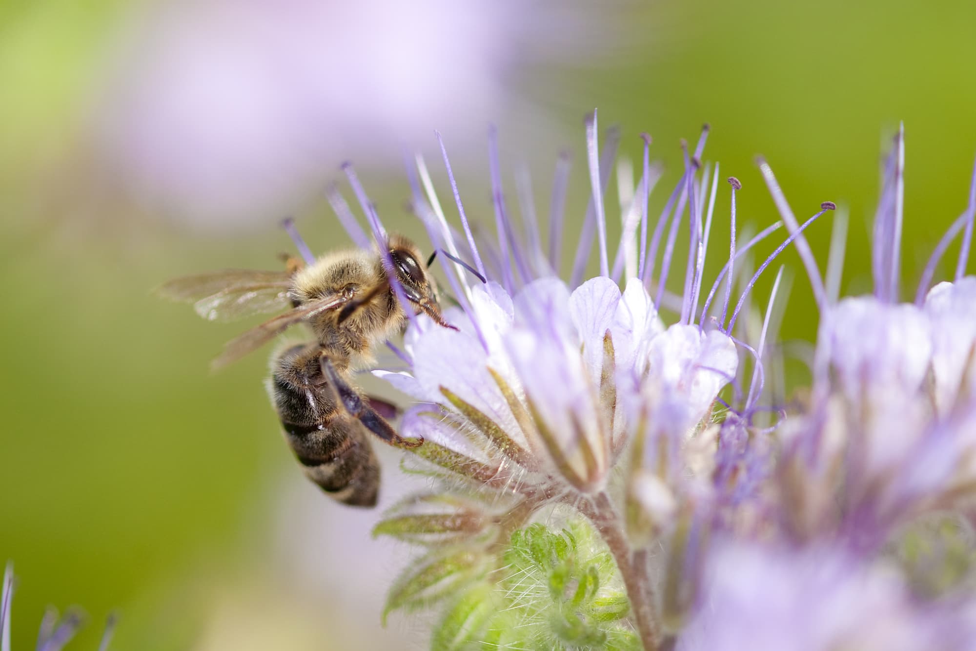Es gibt inzwischen jedoch Hinweise darauf, dass Wildbienen durchaus auf eine massive Präsenz von Honigbienen in ihrer Nachbarschaft reagieren. Kerstin Walther-Hellwig von der Universität Gießen und ihre Kollegen haben das zum Beispiel im Amöneburger Becken bei Marburg beobachtet. Direkt neben einem Feld mit Büschelschön (Phacelia tanacetifolia), das gezielt als Bienenweide angebaut wird, haben sie bis zu zehn Honigbienenvölker aufgestellt. Dann haben sie vier oder fünf Tage lang gezählt, wie viele Blütenbesucher auf dem Acker und auf benachbarten Flächen mit natürlichen Pflanzenbeständen unterwegs waren.