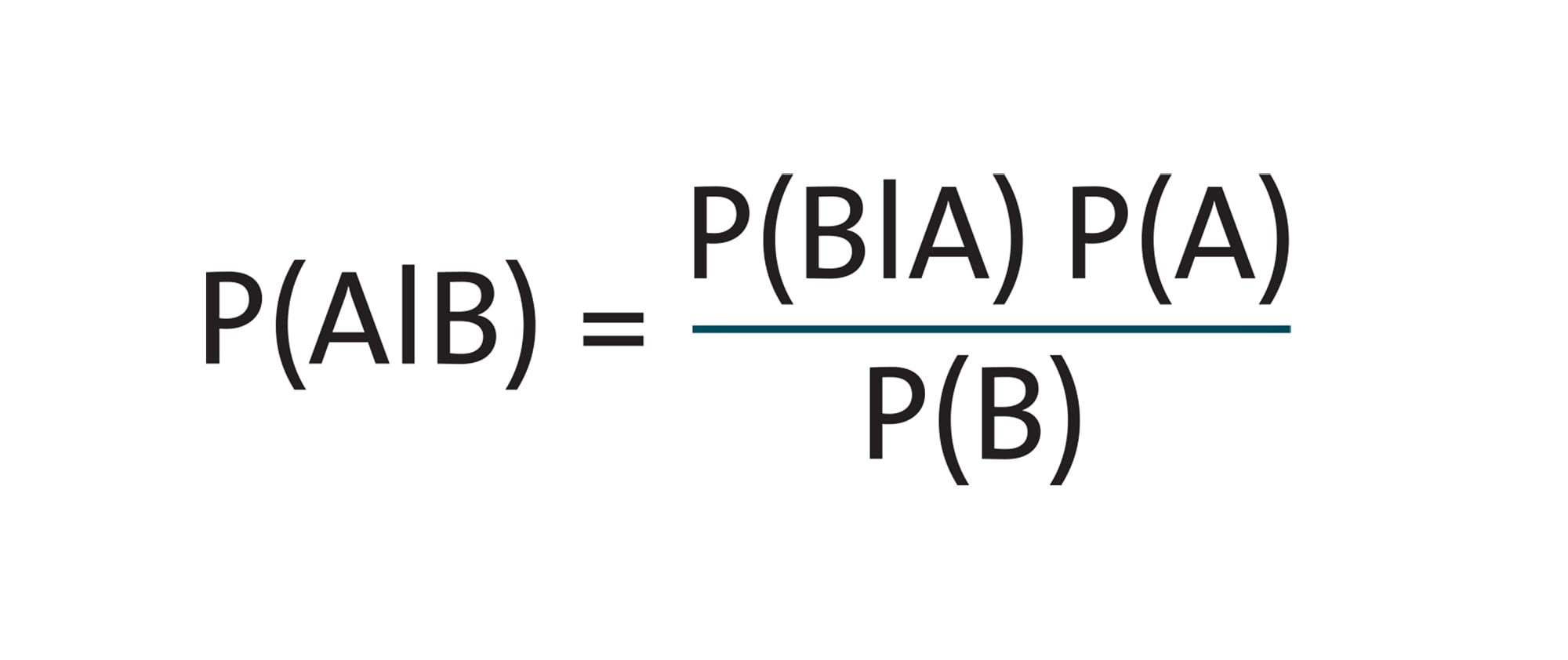 Dieses Problem lässt sich theoretisch lösen, indem man umgekehrt die Wahrscheinlichkeit betrachtet, dass y Prozent Gewinne aufgetreten wären, wenn x Prozent aller Lose Gewinnlose sind (B|A). Der entscheidende Dreh ist, bedingte Wahrscheinlichkeiten zu berechnen (etwa die von A vorausgesetzt, dass B), was Statistiker als vertikalen Strich darstellen (A|B). In der heutigen Form lautet Bayes’ Theorem wie oben abgebildet.