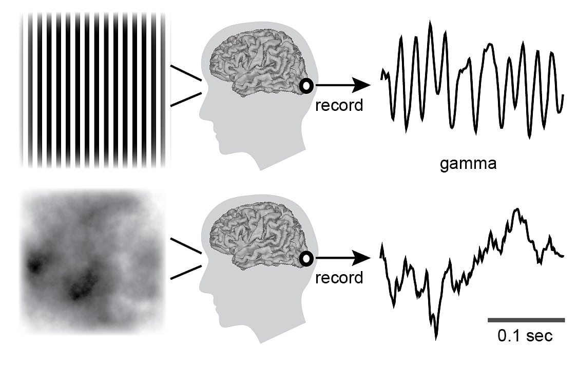 Gehirnwellen entstehen durch die gemeinsame elektrische Aktivität der Nervenzellen, sie lassen sich einfach mit Hilfe von EEG messen. Eine ausgeprägte Gammaaktivität bedeutet, dass viele Nervenzellen mit vergleichsweise hoher Frequenz von mehr als 30 Hertz feuern. An und für sich gilt das nicht als besonders gesundheitsschädlich – eher im Gegenteil. Viele Forscher sehen darin eine Folge von Aufmerksamkeits- oder Konzentrationsvorgängen oder sogar die treibende Kraft dahinter. Dass die Muster auch für den von Epilepsie nicht betroffenen Betrachter etwas Unangenehmes haben, könnte daran liegen, dass das Gehirn dadurch überstimuliert wird.