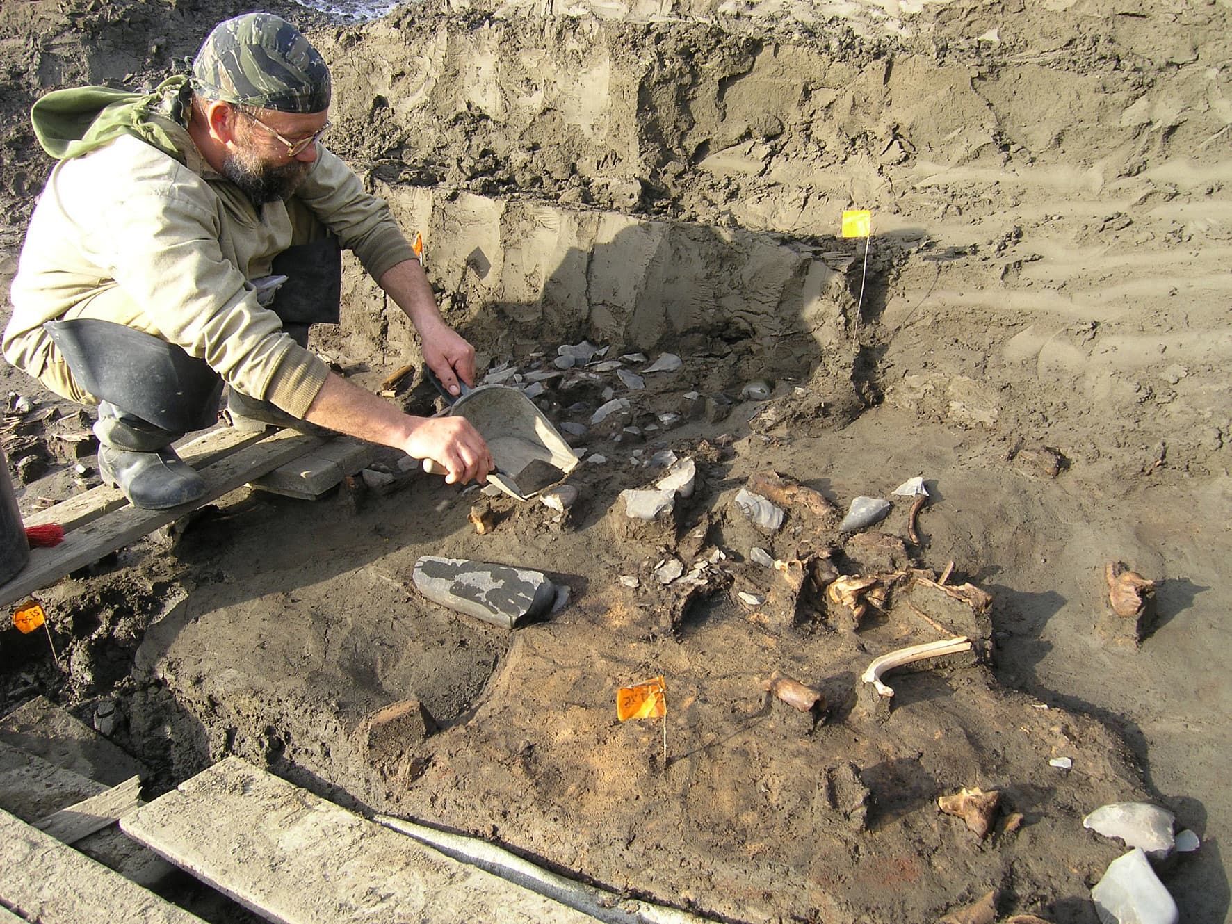 Für diese Überlegung spricht auch die Unzahl an Nähnadeln aus kleinen Knochen, die die Forscher in mühevoller Arbeit aus dem Untergrund bargen: »Offensichtlich nähten die Menschen mit diesen Nadeln die Felle für ihre Kleidung und auch für Zelte zusammen, in denen sie lebten«, sagt Pitulko. Vermutlich war nähen zu können für das Überleben des Klans ähnlich wichtig, wie ein guter Jäger zu sein.
