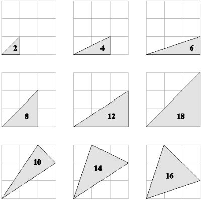 In einer Pressemitteilung skizziert das Institut für aberkannte Mythologie der Universität von Middlesix ein denkbares Szenario. Danach hat Kolumbus in der unerforschten Karibik ein innovatives Navigationssystem von Leonardo getestet. Für so eine Probe gibt es bis heute kein geeigneteres Gebiet als das Kubus-Archipel, dessen Inseln jeweils exakte zwei Seemeilen Abstand zu ihren nächsten Nachbarn haben. Die Aufgabe für Kolumbus wird gelautet haben, so viele Dreiecke mit unterschiedlichem, jedoch ganzzahligem Flächeninhalt zu segeln wie möglich. Noch weiß niemand, wie viele verschiedene Dreiecke das sein könnten und wie groß jeweils deren Flächeninhalte wären. Ein Grund, weshalb die erste Reise des Kolumbus so lange gedauert hat? Gelingt es Ihnen, die Antworten schneller zu ermitteln? Vielleicht sogar ohne Karavellen, nur mit Bleistift und Papier?